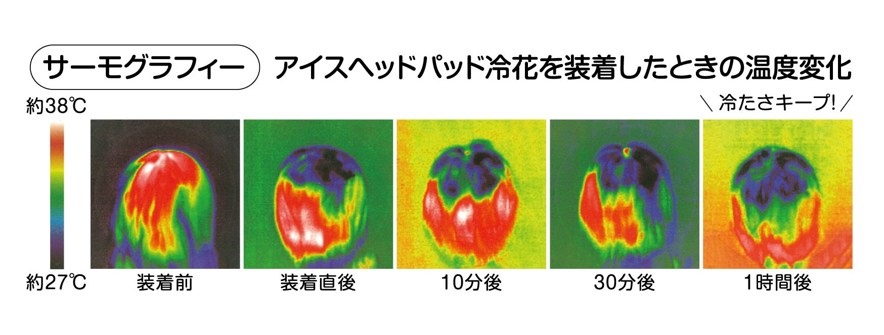 さらに、24℃以下で自然凍結するため、クーラーボックスやカークーラー等で冷却することもできる。屋外作業時にヘッドパッドの中身が液体になってしまってもすぐに冷却ができるのもポイント。