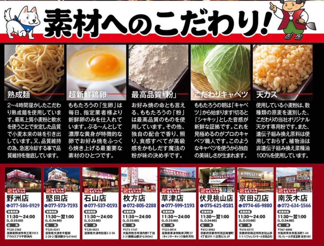 【新規OPEN】お好み焼/鉄板焼/もんじゃ焼「お好み焼ももたろう」が遂に寝屋川市に出店!大阪府内3店舗目!2024年8月11日(日)ファミリーお好み焼店『ももたろう寝屋川店』がグランドオープン!