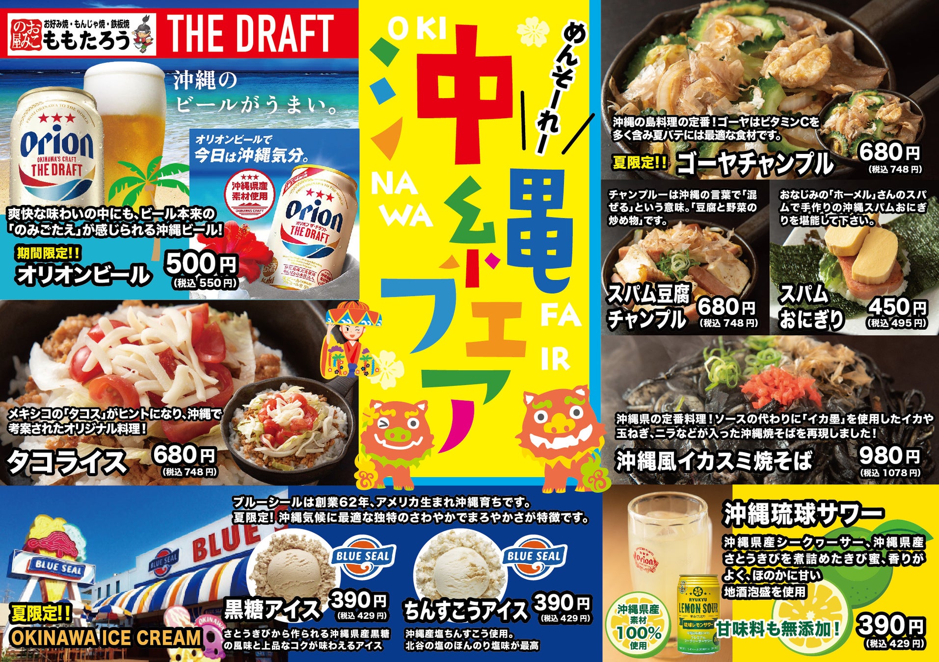 オリオンビール&ゴーヤチャンプル&ご当地ブルーシールアイスなど沖縄料理をお楽しみ下さい‼