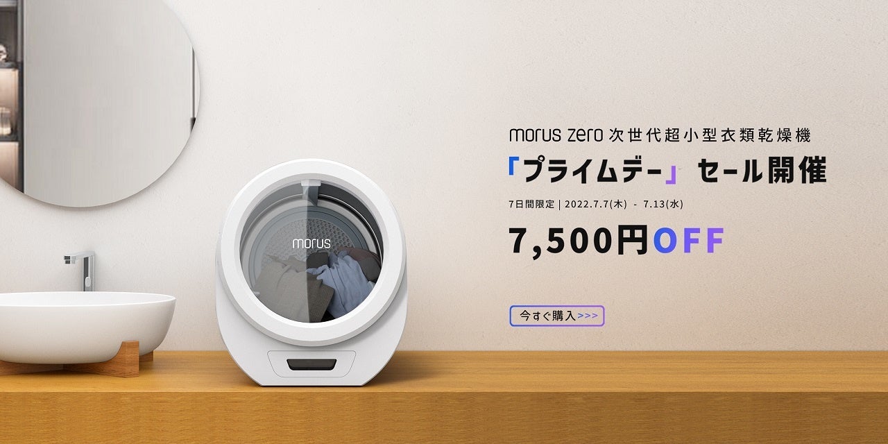 Morusは2022年7月7日より、「プライムデーセール」を開催します。キャンペーン開催期間中、7500円の割引で話題の次世代衣類乾燥機Morus Zeroを購入できます。