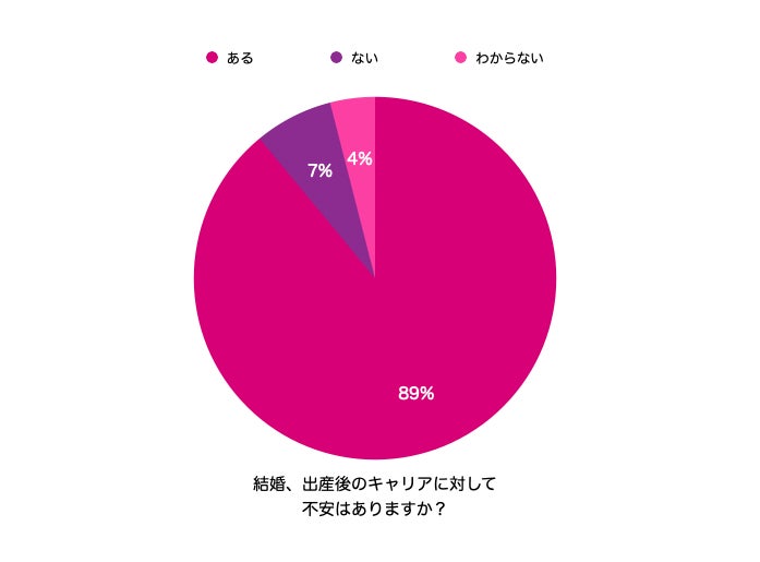 - 女子学生の89%が「結婚、出産後のキャリアについて」何かしらの不安があると回答