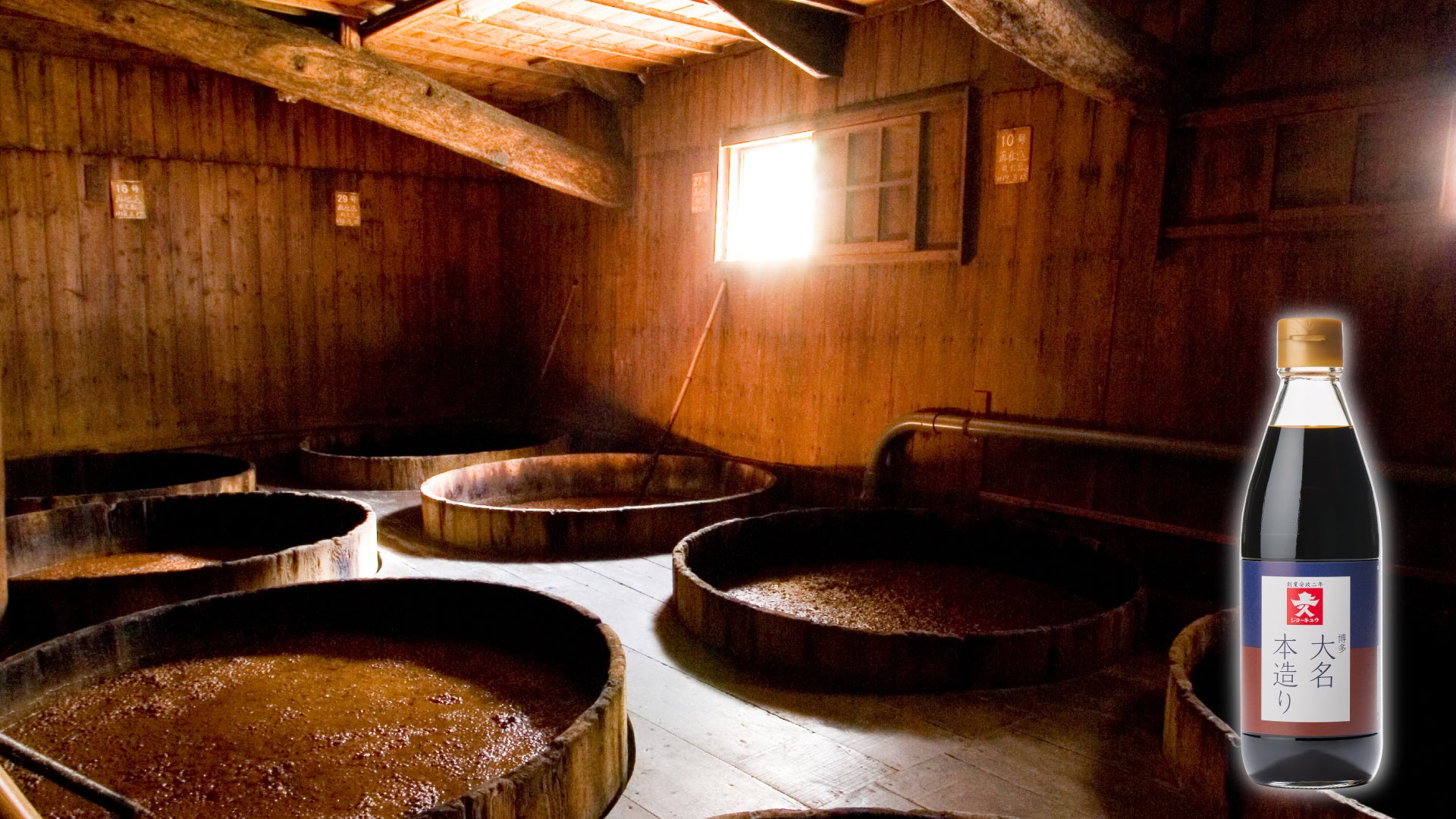 博多大名本造りしょうゆは、福岡県産の丸大豆、小麦を使い、1年以上の歳月と160年来受け継がれた