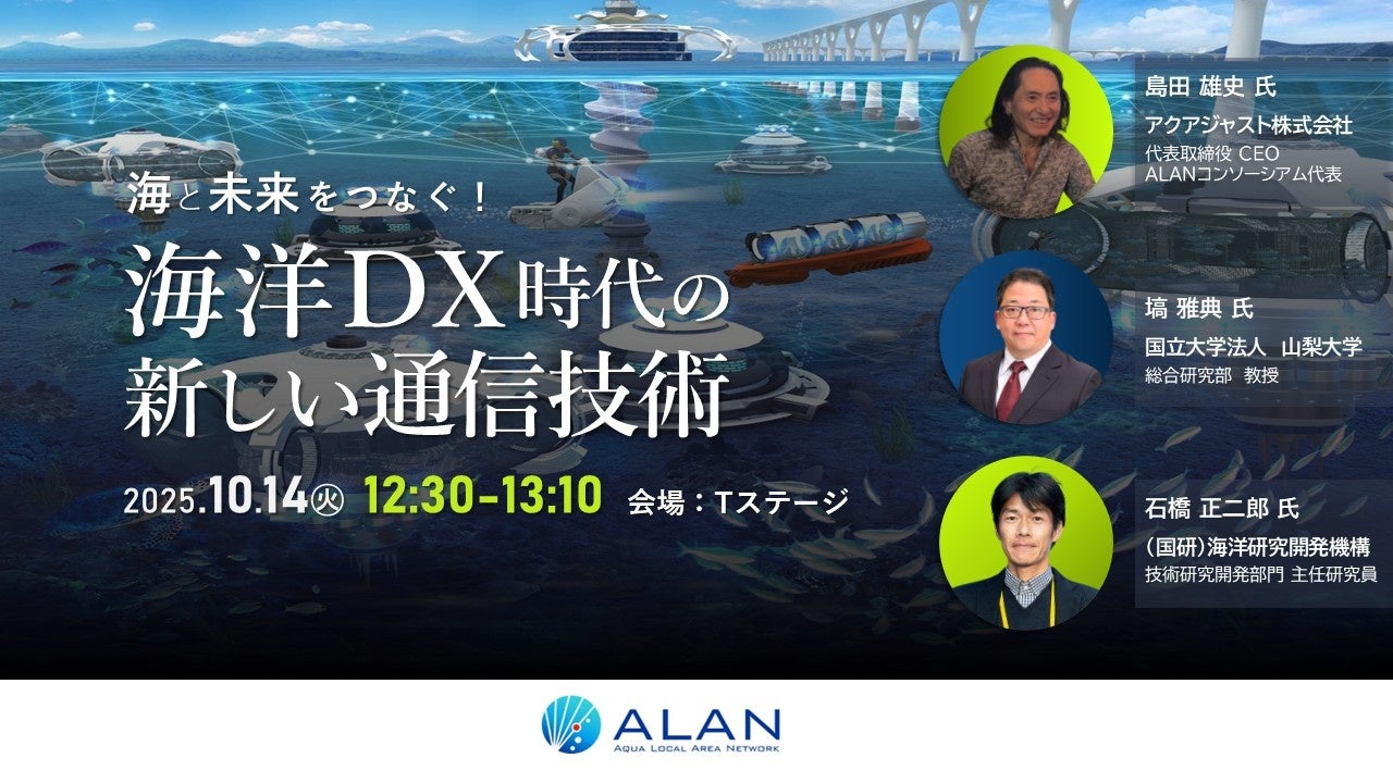 ALANコンソーシアムは、幕張メッセで開催される『CEATEC2025』内で展開される『海洋デジタル社会パビリオン』にて海洋関連機器・サービスを展開する事業者・団体と共に水中光技術の展示・機器体験/コンファレンスを実施いたします。