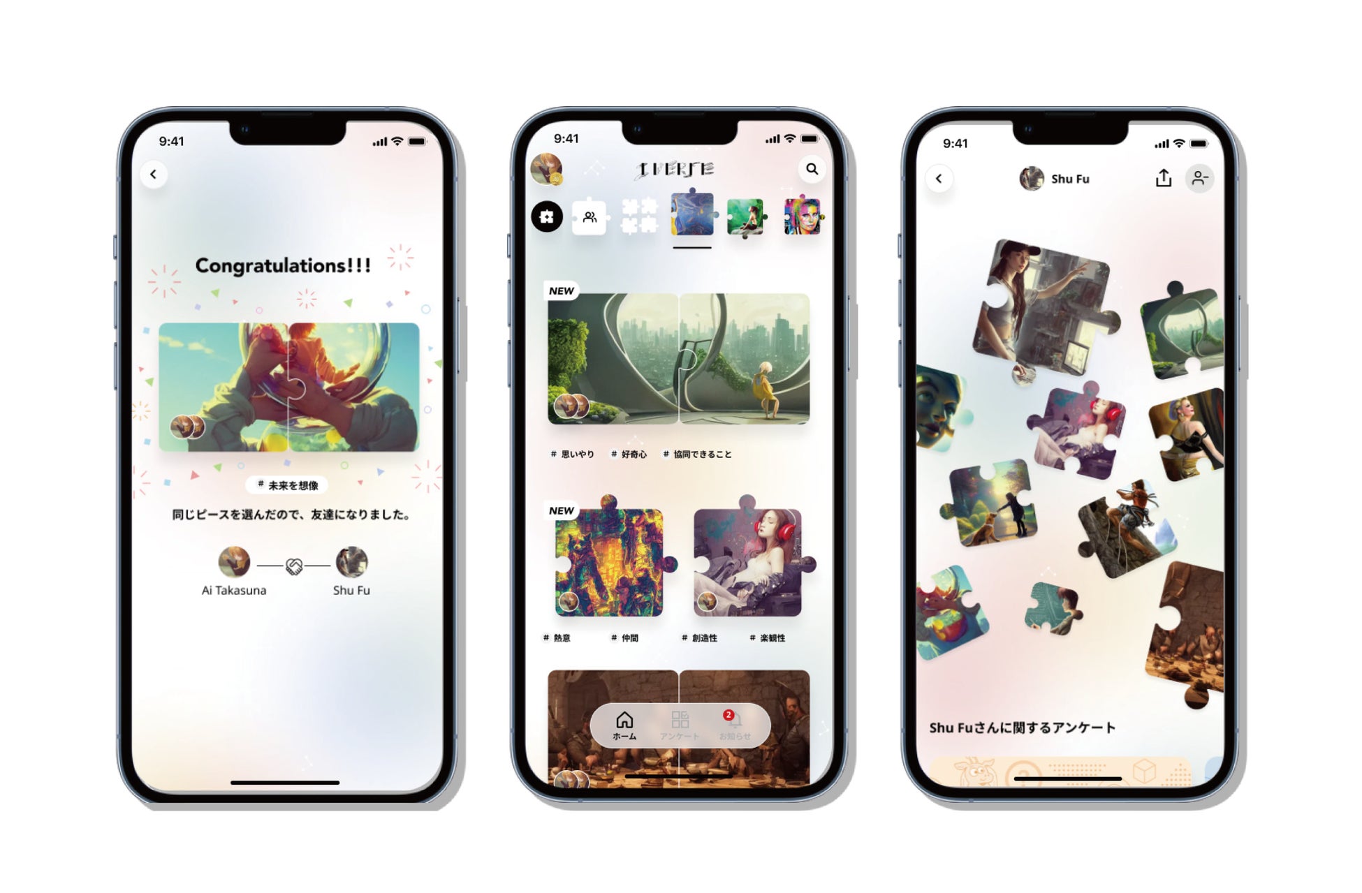 IVERSEでの体験は、自分を表現するハッシュタグから自動生成される"ピース”を持つことから始まります。自分のピースと他者のピースを組み合わせて新しい絵をつくることが出来たり、自分の個性を表現したピースが認められる場があったり、個性をベースに新しい機会と出会えたりします。