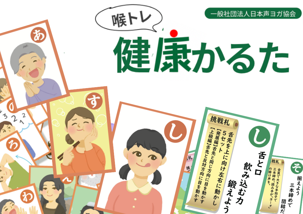 人員不足の介護現場でも施設利用者が自走して楽しみながら「喉」を鍛えられる仕掛け満載の交流カルタです。