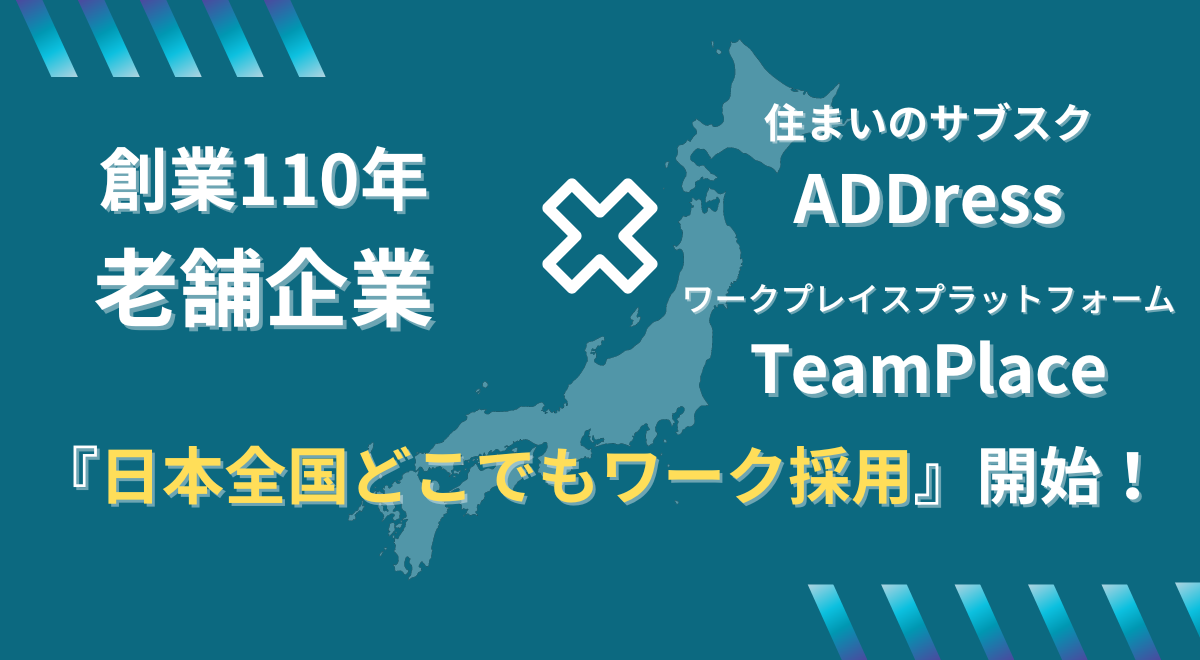 【全国初】創業110年の老舗企業が『日本全国どこでもワーク採用』を開始!~ 「ADDress&TeamPlaceパス法人プラン」第一号会員に~