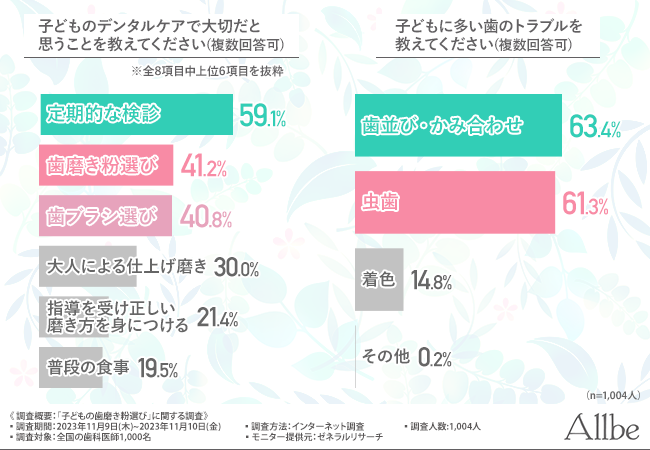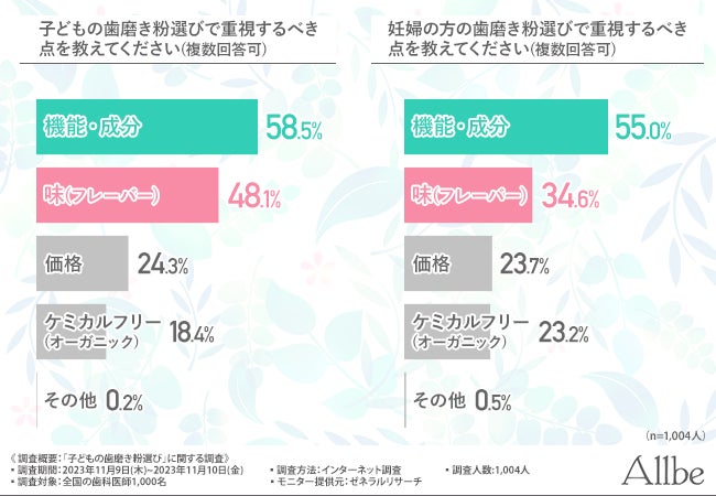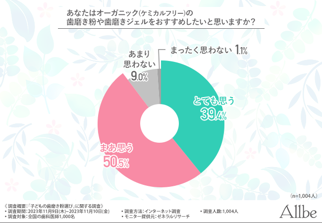そこで今回、オーガニックデンタルケアブランド「Rêve(https://allbe.stores.jp/)」を展開するイーリス株式会社は全国の歯科医師1,000名を対象に「子どもの歯磨き粉選び」に関する調査を実施しました。