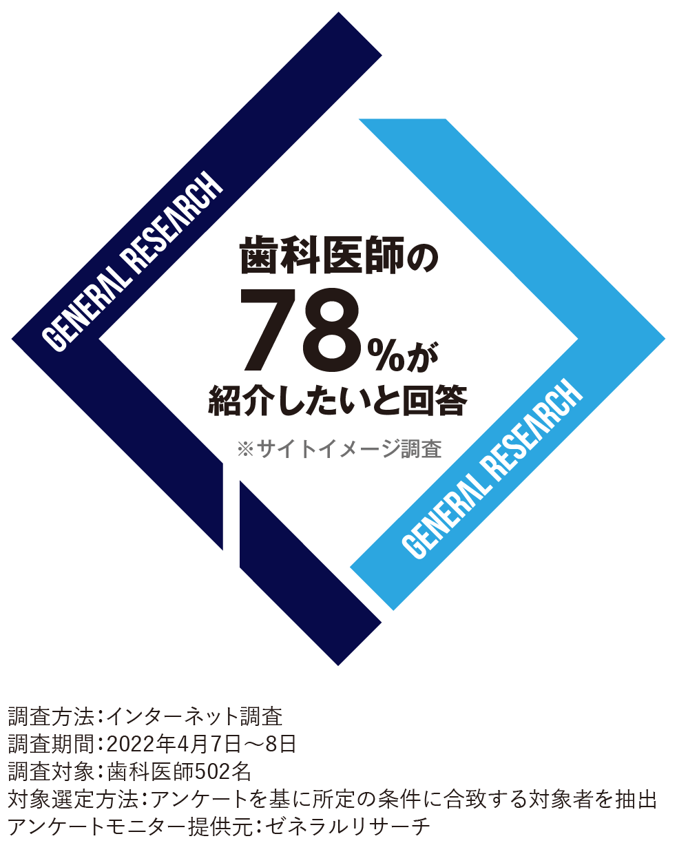 ※この調査の内容は、あくまで歯科医であると回答した方を対象にしたアンケート結果の紹介であり、効果や効能を実証するものではございません。