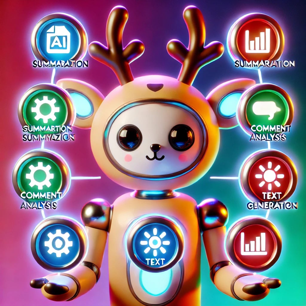 現在Deer-Ai には、「対話アシスタント」、「翻訳」、「議事録作成」、「コメント分析」、「市場分析」、「コードのエラー修正」、「メモの要約」、「画像作成」、「数学相談室」、「文章作成 & 校閲」といった日々のタスクを効率化する10の機能が搭載されています。