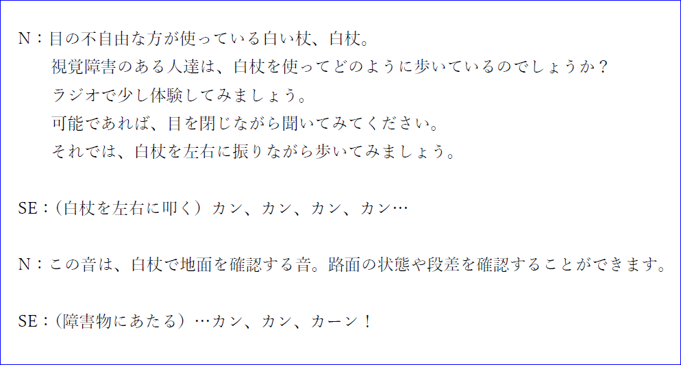 ・視聴覚障害者の目線を疑似体験できる。