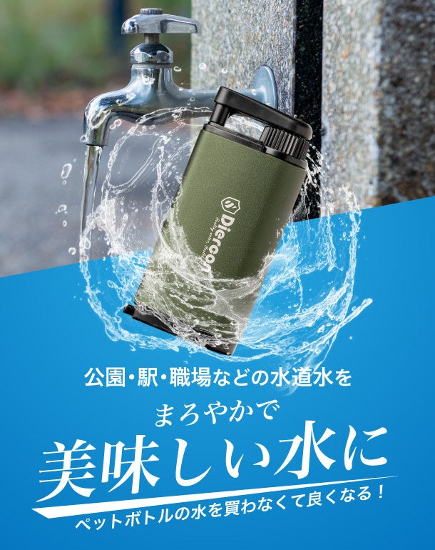 雨水などを飲めるレベルまで綺麗にする小型携帯浄水器。電気を必要としないアナログ仕様のため災害・防災用品としても!持ち運び、保管・備蓄に便利なコンパクト設計。車に踏まれても壊れない超頑丈構造を実現!