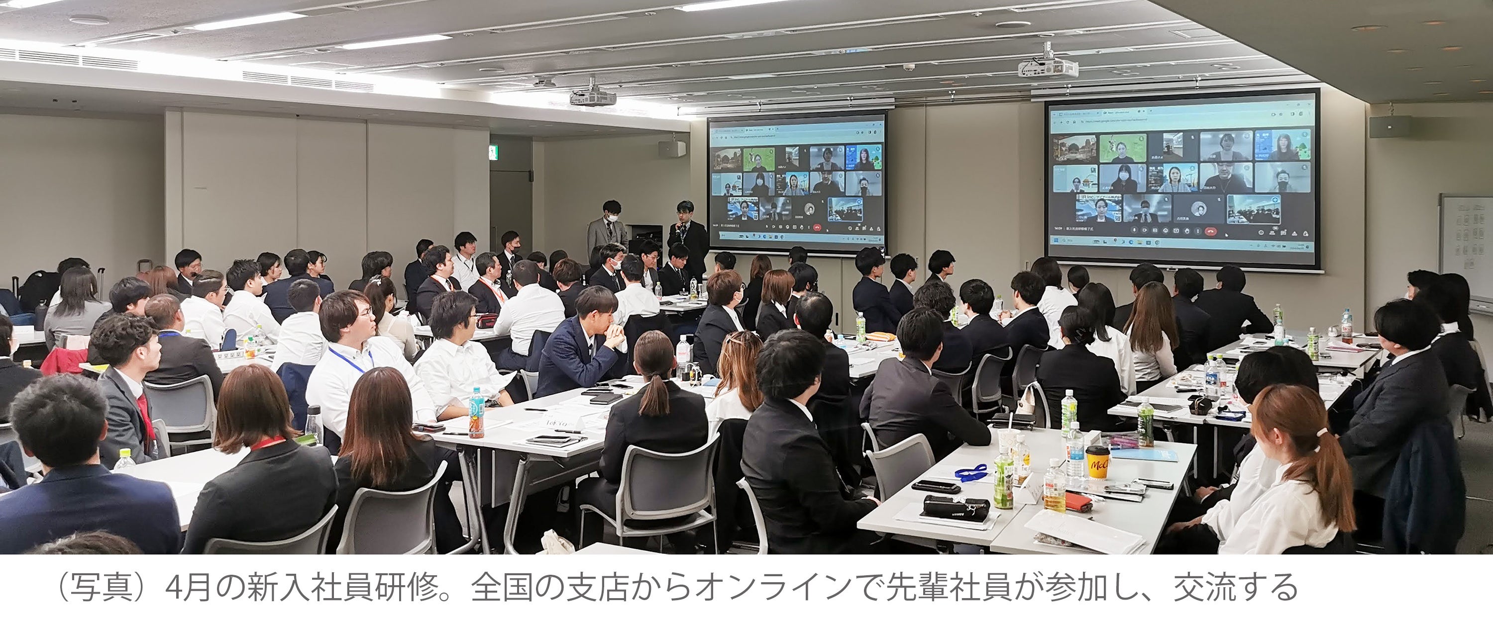 派遣技術者は入社時に20人~80人の同期ともに新入社員研修を受けます。この研修はすべて内製化されており、先輩社員が講師となって社員同士の交流を図りながら、建設業界の基礎知識、施工管理やCADオペレータ等の業務内容、さらには基本的なPCスキルやビジネスマナーまでを教えます。これにより、未経験者や未就業者でも、現場ですぐに働くための準備ができるようになっています。配属後の手厚いフォロー体制