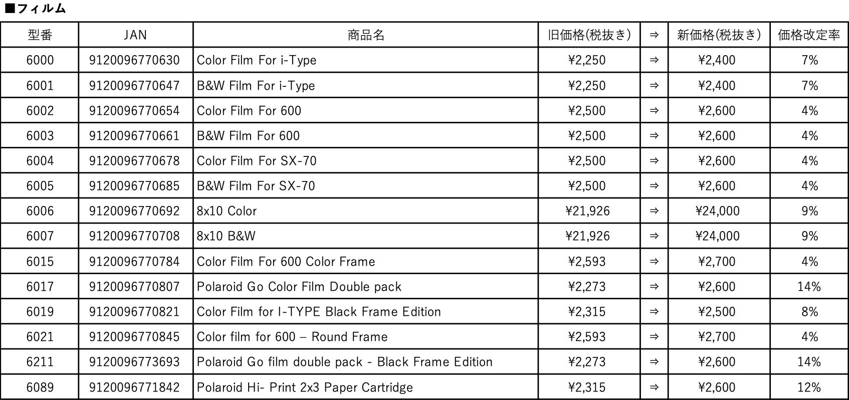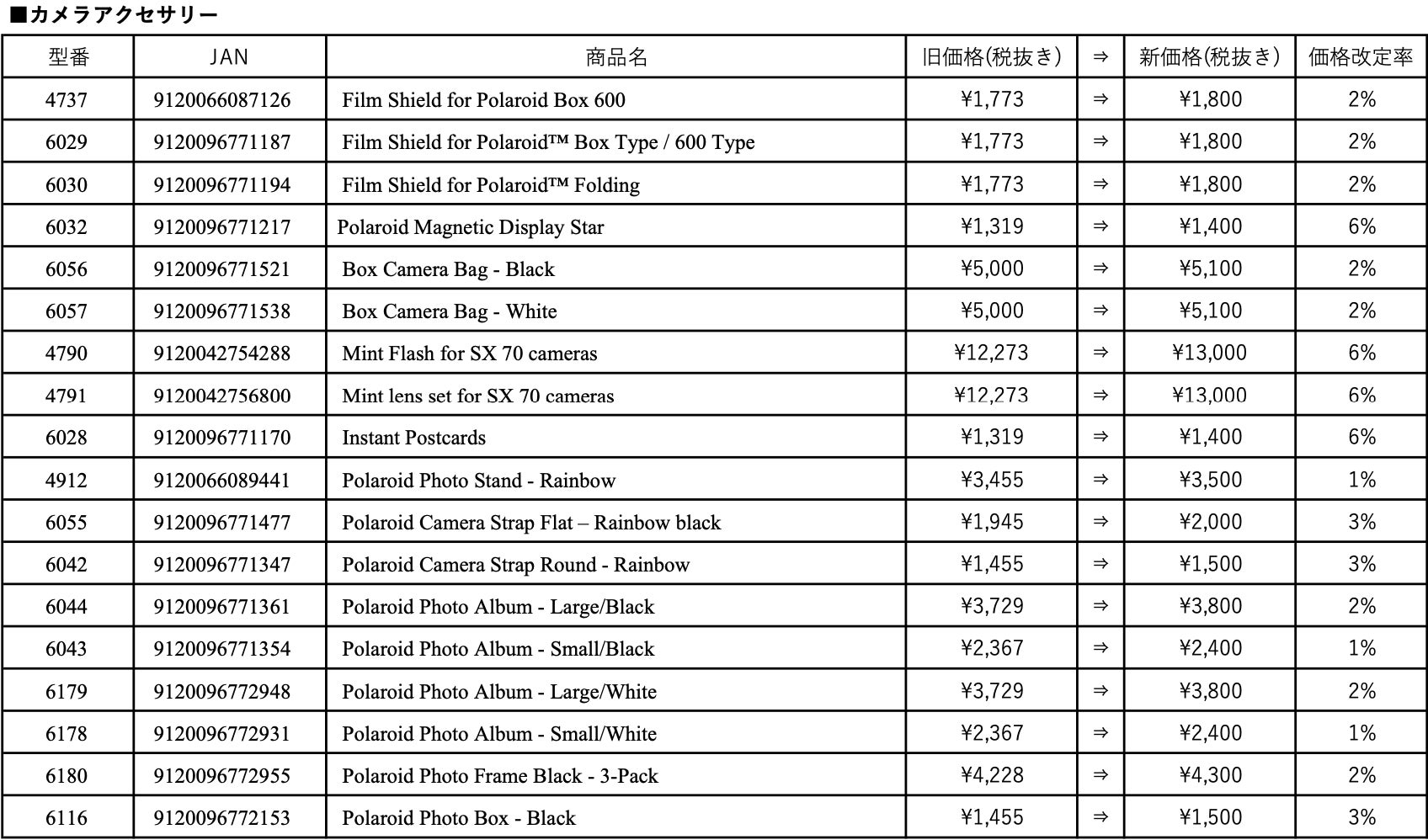 つきましては、Polaroid全商品の価格を改定させていただくことになりました。