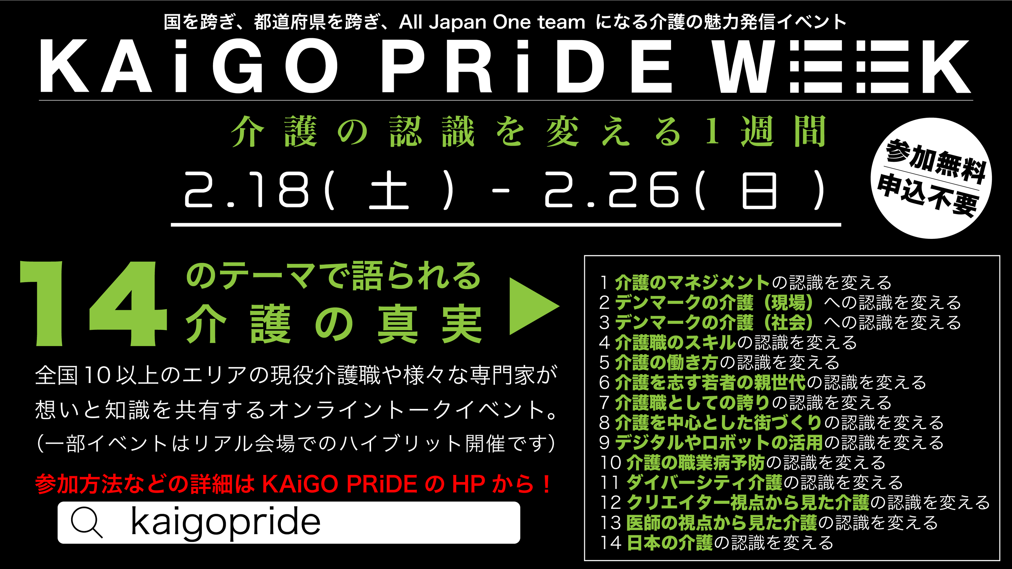 14のテーマを通して介護の認識を変えるオンラインイベント「KAiGO PRiDE WEEK」の初開催決定!