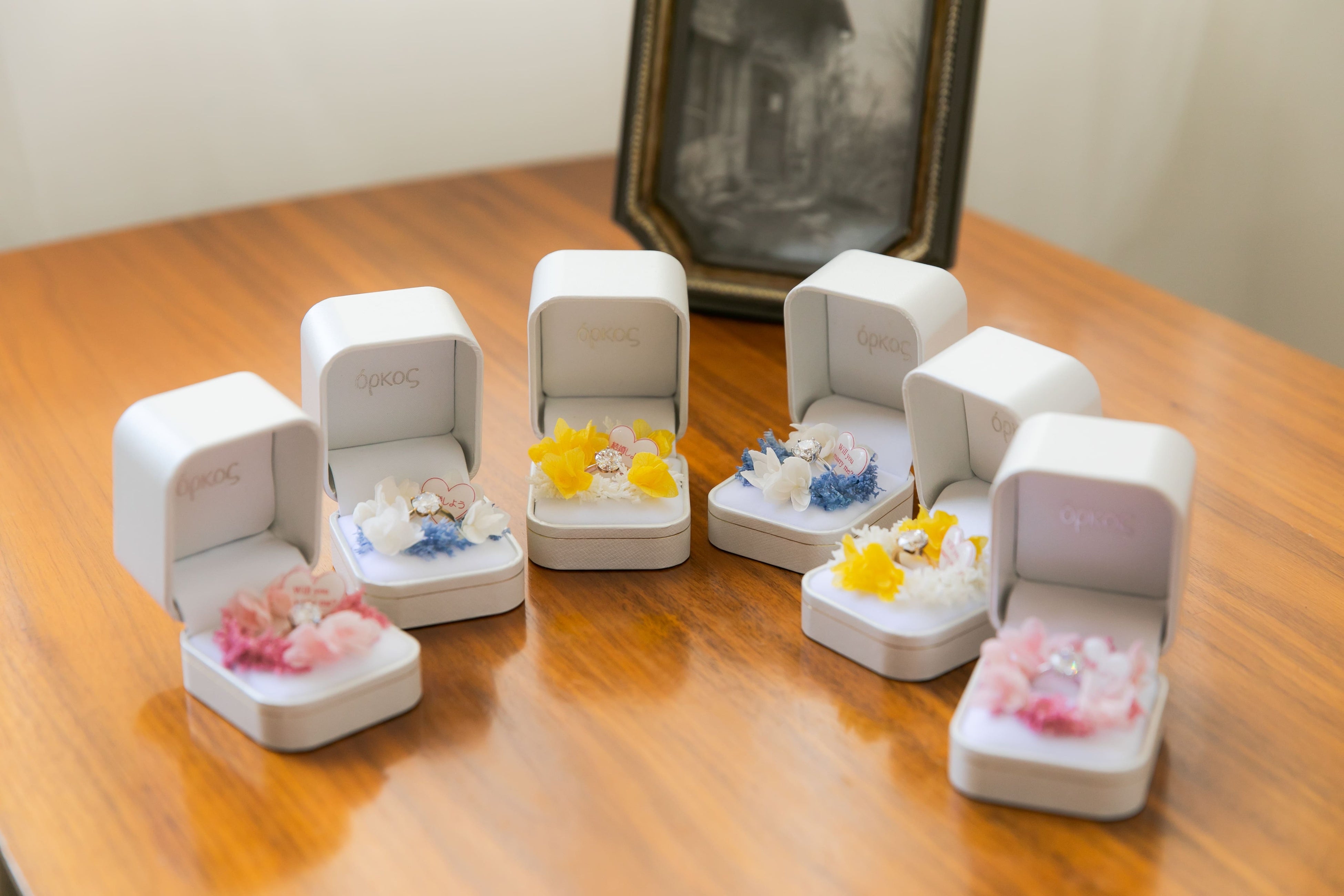 『オルコス』はギリシャ語で『誓い』を意味し、思い出にのこる箱パカプロポーズをサポートするプロポーズアイテムです。彼女に似合う色・彼女が好きな色のフラワーヘッドリースデコレーションとリングの組み合わせは100通り以上!サプライズプロポーズに彩り添えて、花嫁にふさわしい可愛らしさを演出します。