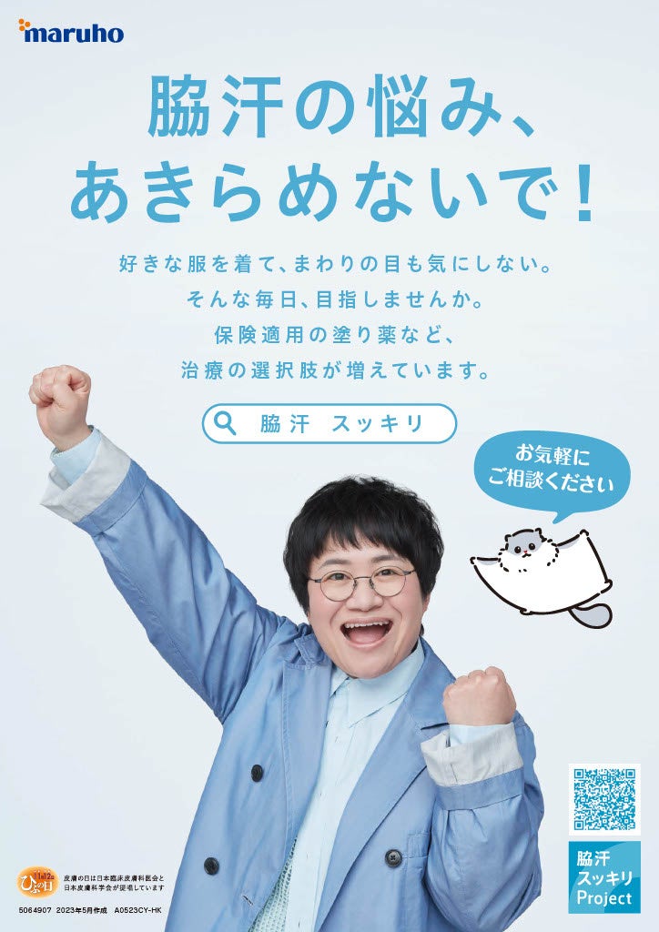 本動画では、近藤さんがアンバサダーとなり、脇の多汗症が原因で「好きな服が着られない」「周りの目が気になる」といった悩みを抱える方に対して、「保険適用の塗り薬などの治療法が増えていること」「いつもの皮膚科で相談できること」を伝え、「脇汗なんかに邪魔させない、スッキリした毎日」を目指すよう呼びかけます。