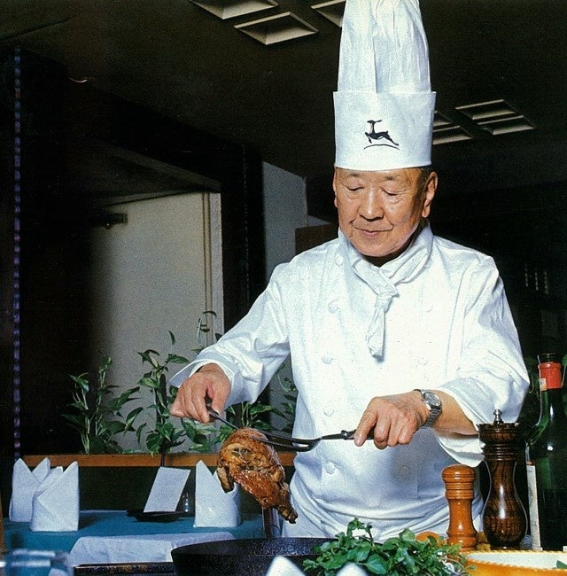 1966年、現本店ビル落成の時にワゴンサービスを始めたのが初代料理長 佐藤松竹は