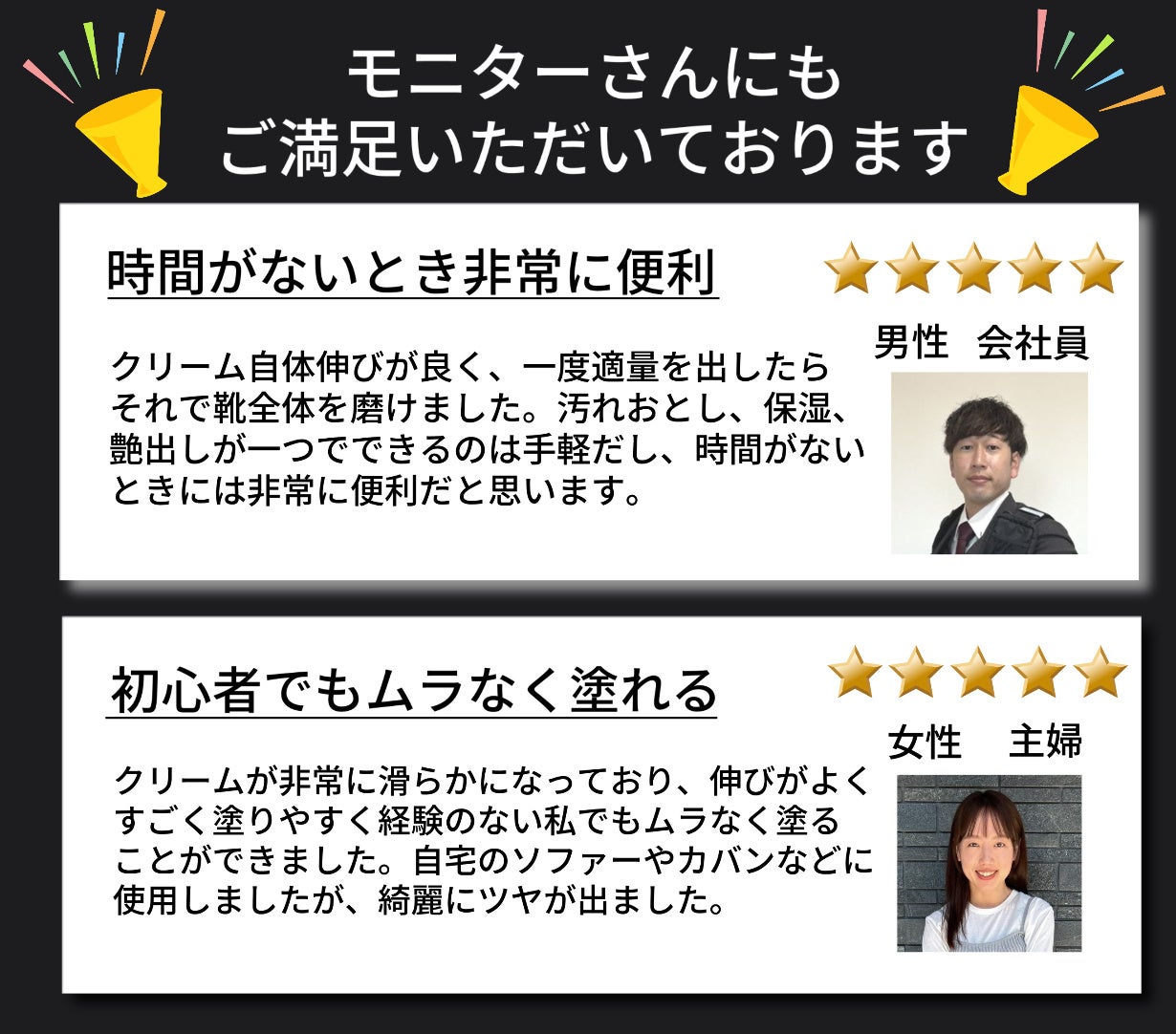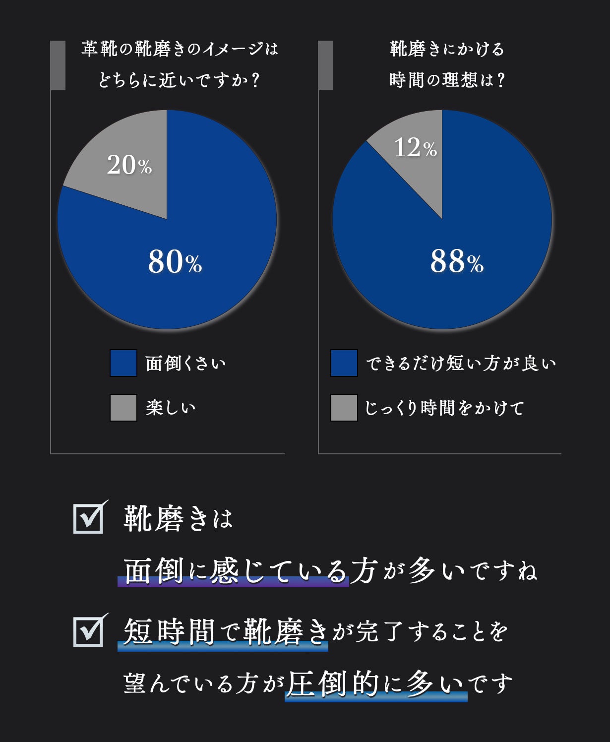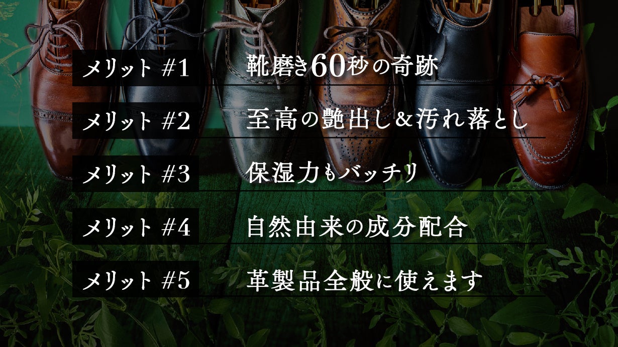 3. 靴クリーム専門メーカーの逸品、オールインワンのため、なんと快速60秒で靴磨きが完了します