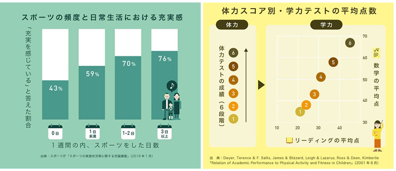 基礎運動能力が高まれば、「出来るが増え、運動が楽しくなり、運動が習慣化する」といった好循環が生まれ、子どもロコモが解消されることはもちろん、様々なスポーツにおいても重要な土台となり、子どもたちの可能性がより広がっていきます。さらに、スポーツの頻度と日常生活における充実感や子どもの体力と学力は相関関係にあると言われており、まさに「運動は成長の原点」、子どもたちが心身ともに豊かに成長することが期待出来ます。
