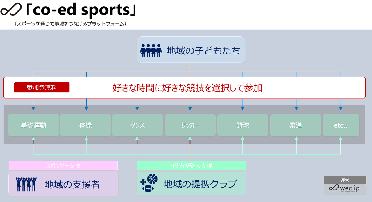 株式会社weclip(本社:埼玉県川越市、代表取締役:横田泰成)は、子どもたちに様々な運動機会を無料で提供するプラットフォーム「co-ed Sports(コエドスポーツ)」を、2022年4月1日(金)埼玉県川越市にてサービス開始いたします。