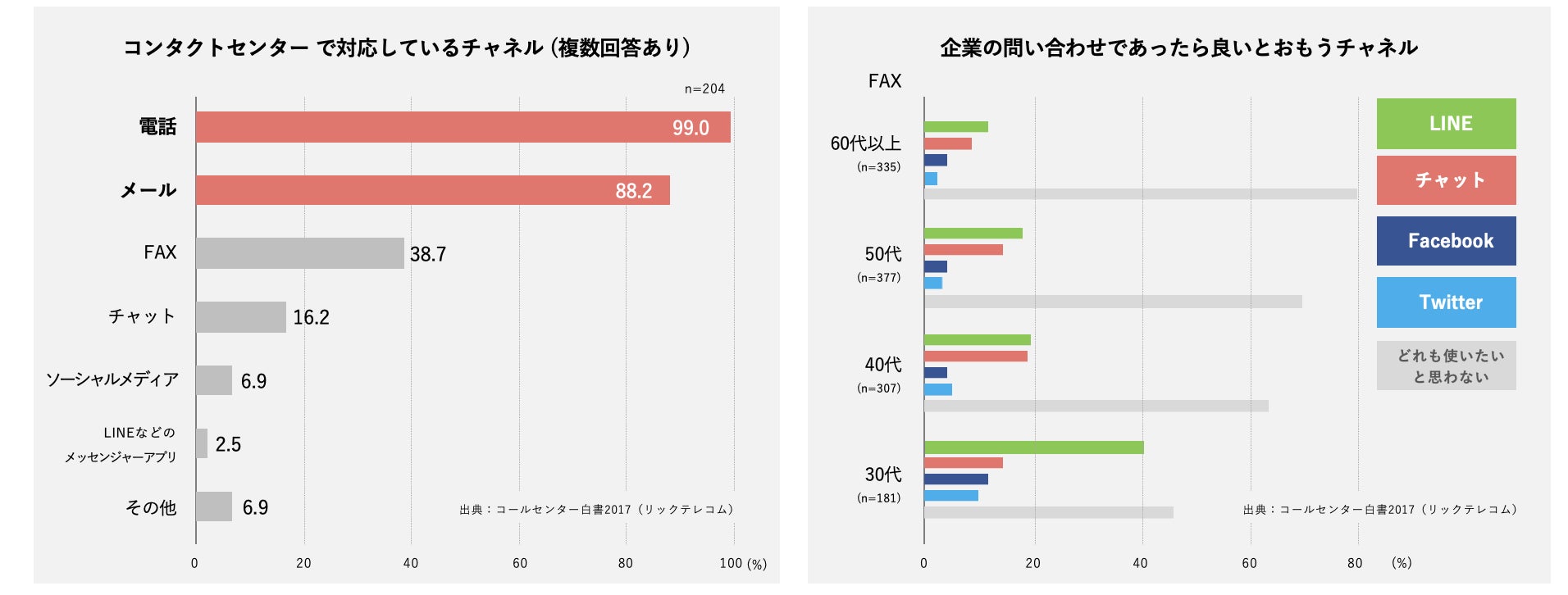 一方で、顧客対応を行う側のコンタクトセンターでは、未だに電話・メールといったチャネルが主流で、ノンボイス系のチャネルの整備が遅れていることが実情としてあります。