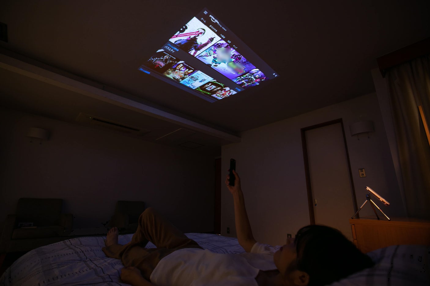 1. 天井に映せるので、寝ながらゆっくり観られる