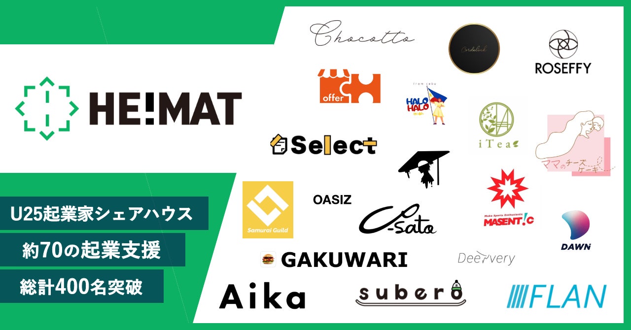 Heimat 株式会社(東京都港区 代表取締役:日高隆之介、以下、Heimat)が運営するU25起業家シェアハウスが創業から1周年を迎え、参加者総計400名を突破いたしました。