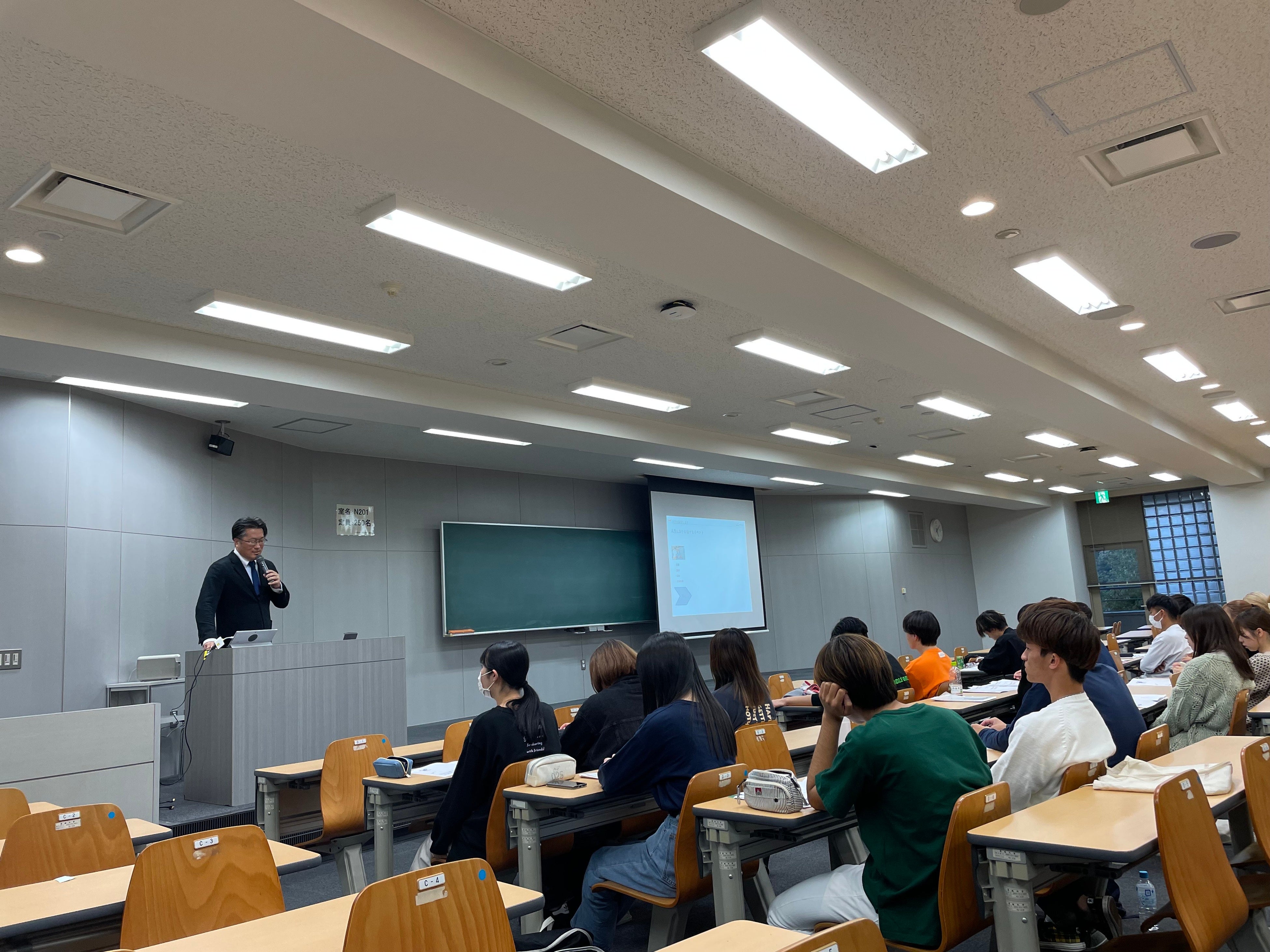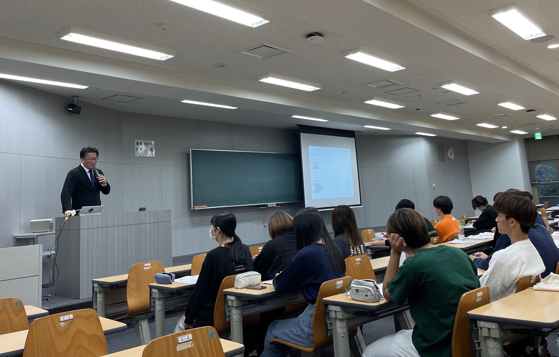 FP Office 株式会社は、2022年10月1日より、一般社団法人未来家計研究所(所在地:東京都墨田区、代表理事:渥美 功介)と名城大学経営学部と共同で、家計データ分析の研究を行ってきました。この共同研究の中でもゼミ所属学生に対して金融教育を行っていましたが、より早いタイミングかつ広い範囲での実施をすべく、1年生に向けて4つのゼミを対象に講義を実施いたしました。