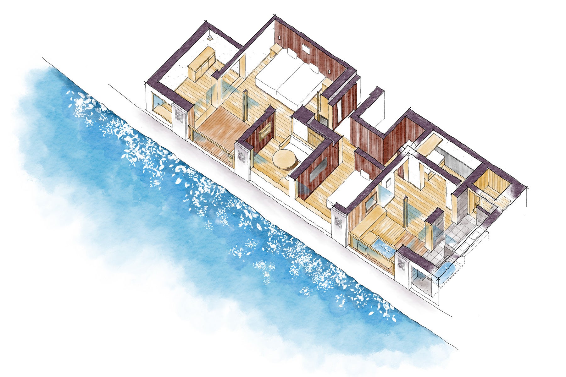主な設備:マスターベッドルーム/ベッドルーム/ソファルーム/テラス/バスルーム/露天風呂/ドライサウナ/トイレ/ウォークインクローゼット/ミニバー