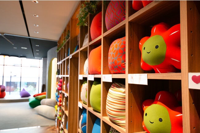 “Yogiboのクッションの中”を表現した「Try」ゾーンは、様々なサイズのYogiboを試すことができる空間です。