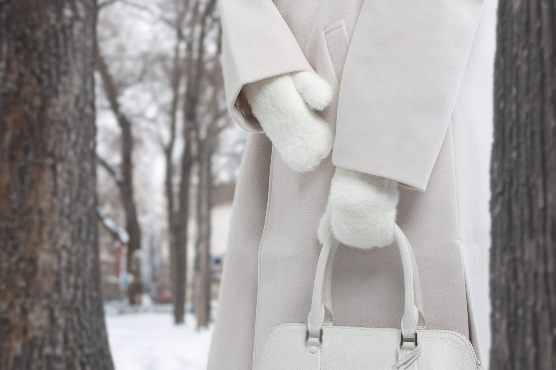 柔らかな手触りと上品な光沢を持つミンクタッチのモールヤーンを使用。ふわふわとした毛足が心地よく、冷気を防ぎつつファッション性も高めます。