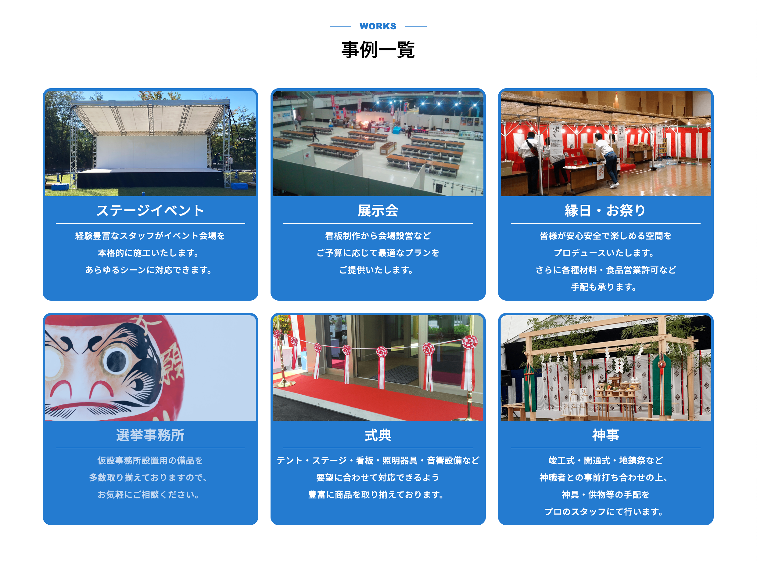 また、「おまかせイベント」は全国に営業所を展開しているため、地域ごとのニーズや要件に合わせたカスタマイズが可能。イベント主催者は地域の文化に根ざした特産品や伝統的なデザインを活かした装飾や演出など、地域の魅力を最大限に引き出すイベントを実現できる。