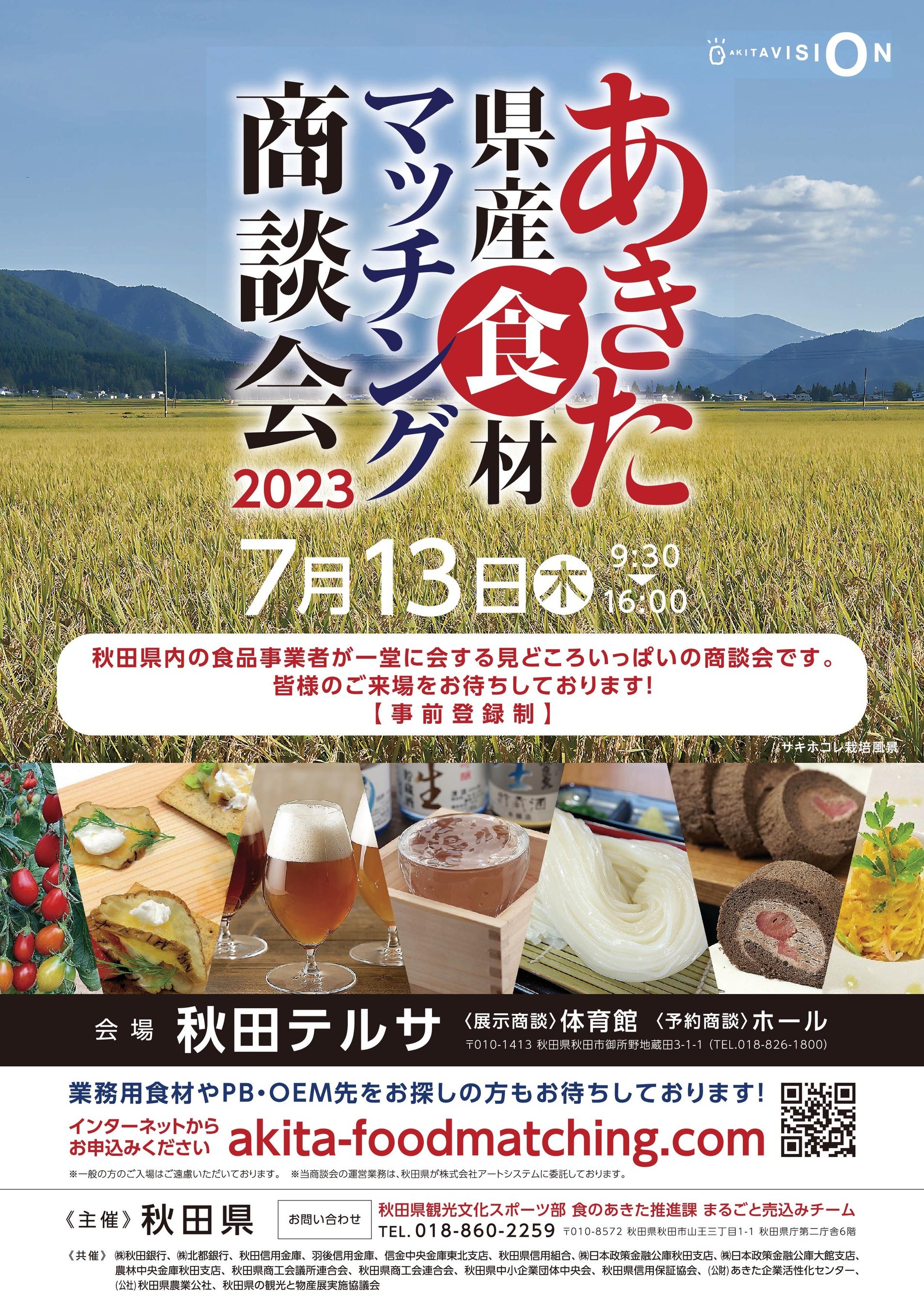 【商談会】秋⽥最⼤級の“⾷”の商談会「あきた県産⾷材 マッチング商談会2023」開催!