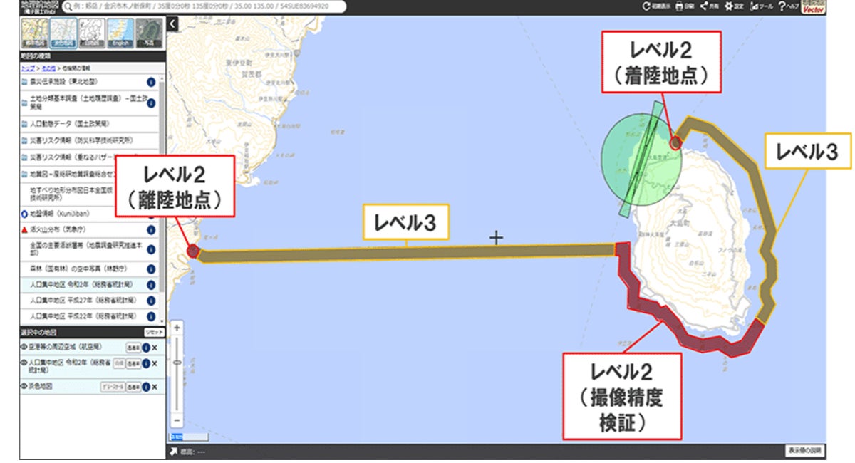 株式会社空解は、株式会社NTTデータから東京都の離島港湾DX事業※における飛行実証業務を委託され、2023年7月14日および21日に、日本で初めて自律航行ドローンの海上横断にて、緊急着陸地点を陸地、海上に一切設置せず、レベル3の海上横断飛行を実現しました。