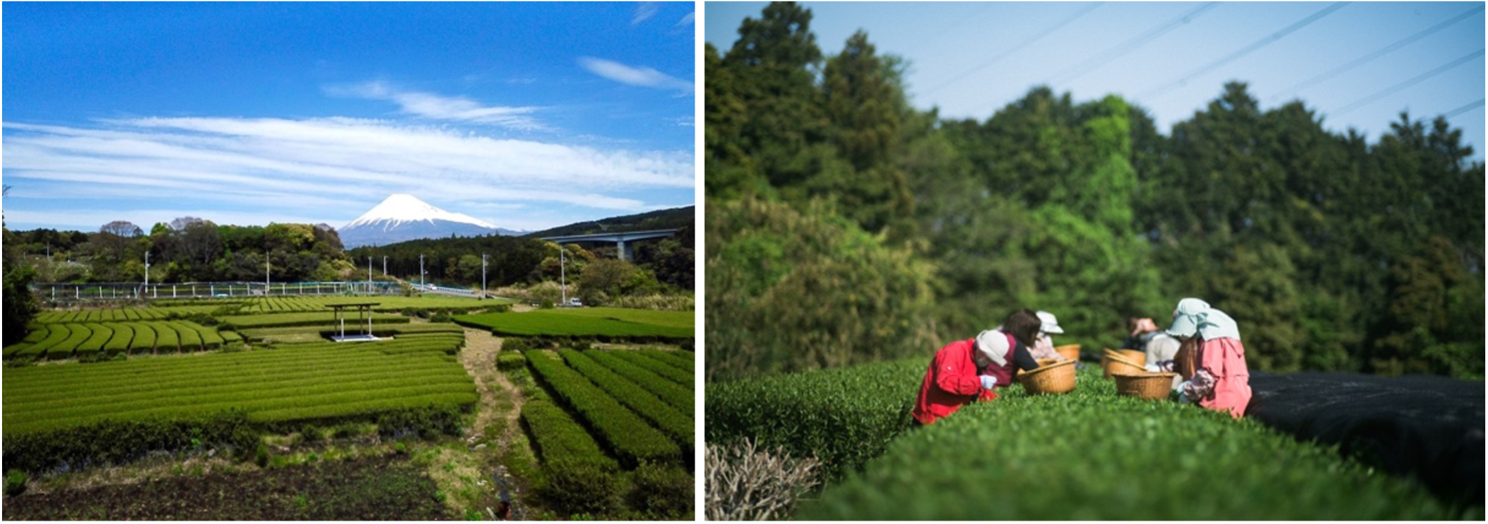 新茶の鮮やかな緑色と澄み渡る青空と富士山のコントラストが美しい景色を眺めながら、思い思いに自由な時間をお過ごしいただけます。また、広大な茶園の中に計3箇所テラスがあり、ツアーや団体のお客様のご利用も可能です。
