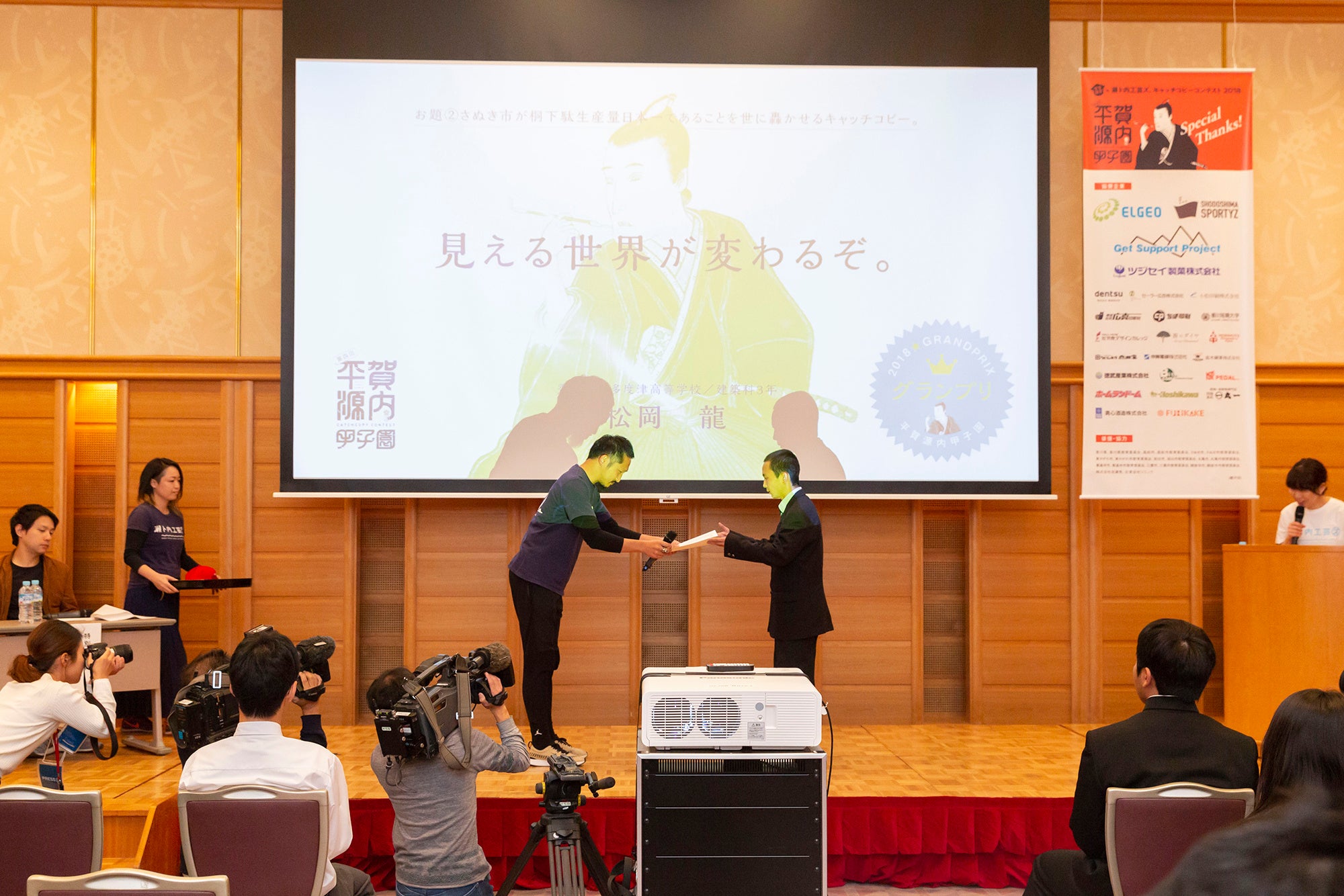 平賀源内甲子園は香川県内の学生を対象としたキャッチコピーコンテストです。平成27年11月に記念すべき第一回目の授賞式をさぬき市志度にて開催いたしました。日本初のコピーライターであり、広告代理業を行ったといわれる平賀源内誕生の地で、第二の平賀源内を発掘しよう!という趣旨のもと、未来のクリエイター発掘、人材育成、地元企業の学生たちに向けたPR・イメージアップ、ひいては香川県の地域活性に繋がればと考えております。回を重ねる毎に参加する学生も増え、数多くの協賛企業様にご協力頂き、大変意義のあるイベントに成長し、開催は今年で八回を数えます。