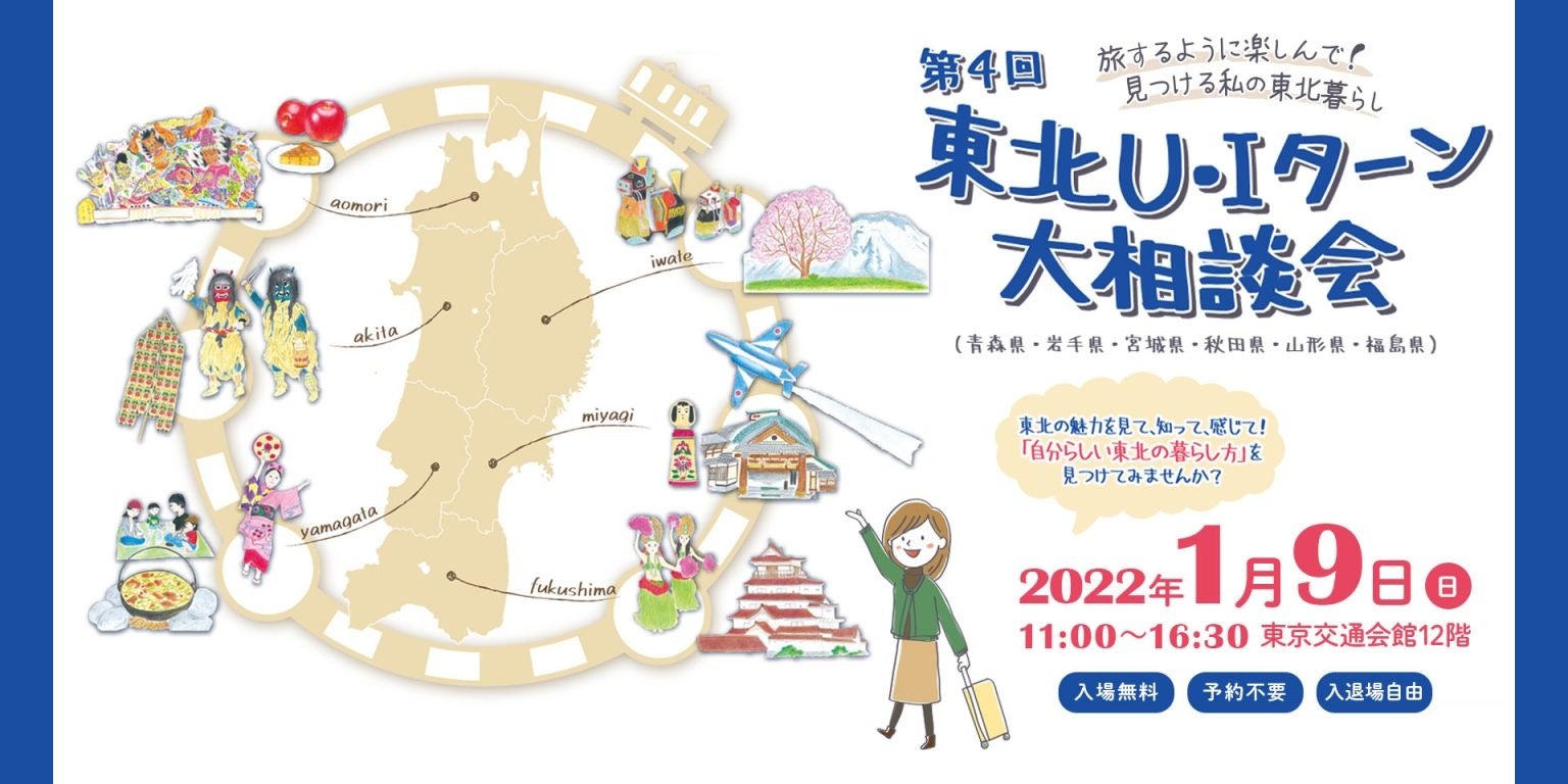全国の自治体と連携して移住を支援する認定NPO法人ふるさと回帰支援センターは、2022年1月9日(日)に東北6県の84の自治体・団体が参加する移住イベント「第4回東北U・Iターン大相談会」を下記の通り開催します。コロナ禍を経験し、地方移住への関心のある方やライフスタイルを見直したい方には、情報収集や直接面談による個別相談ができる良い機会となります。ぜひ、会場へ足をお運びください。