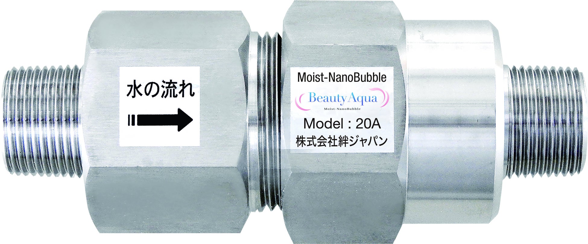 水道管に元付けすると「家じゅうの⽔をナノバブル⽔に変換する」製品、