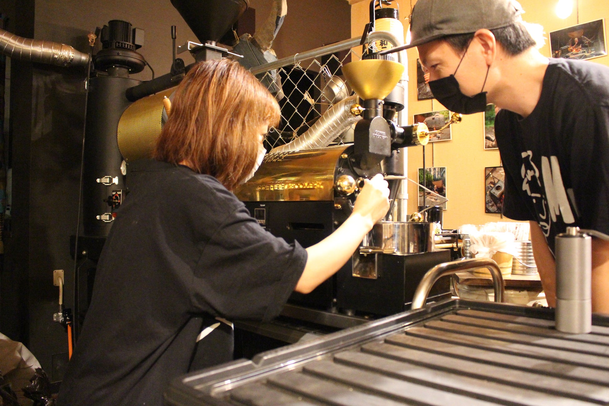 焙煎体験は、焙煎開始前後含め10分、焙煎前、後の焙煎についての話、コーヒーについての話、お客様それぞれに応じた内容で合計約1時間の焙煎体験となります。
