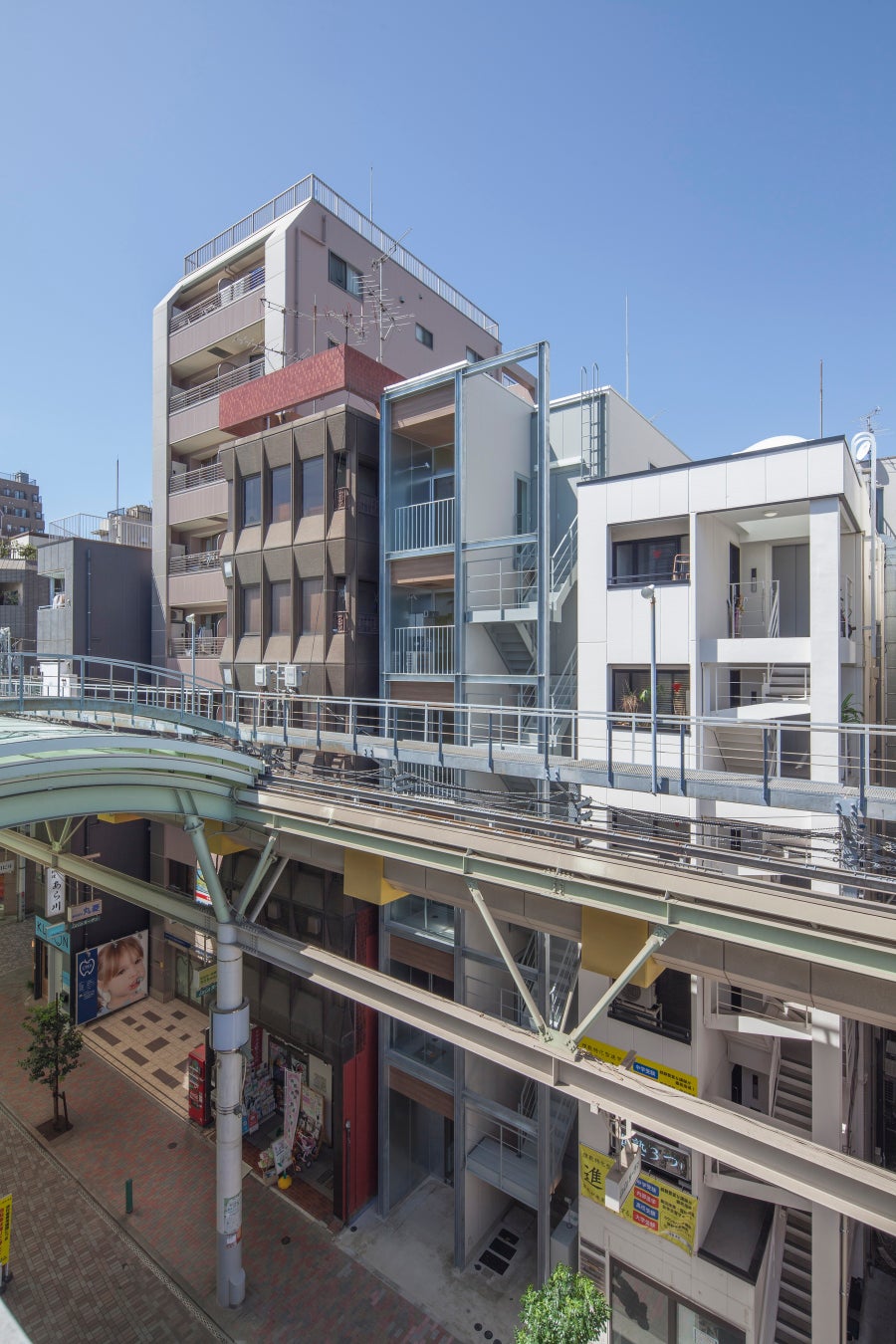 赤羽駅の東側に伸びるアーケード通りに面した、間口5m余、奥行約21m弱の細長く奥の深い敷地にて、下層をテナント、上層を賃貸住戸として計画した地上6階建のビルである。