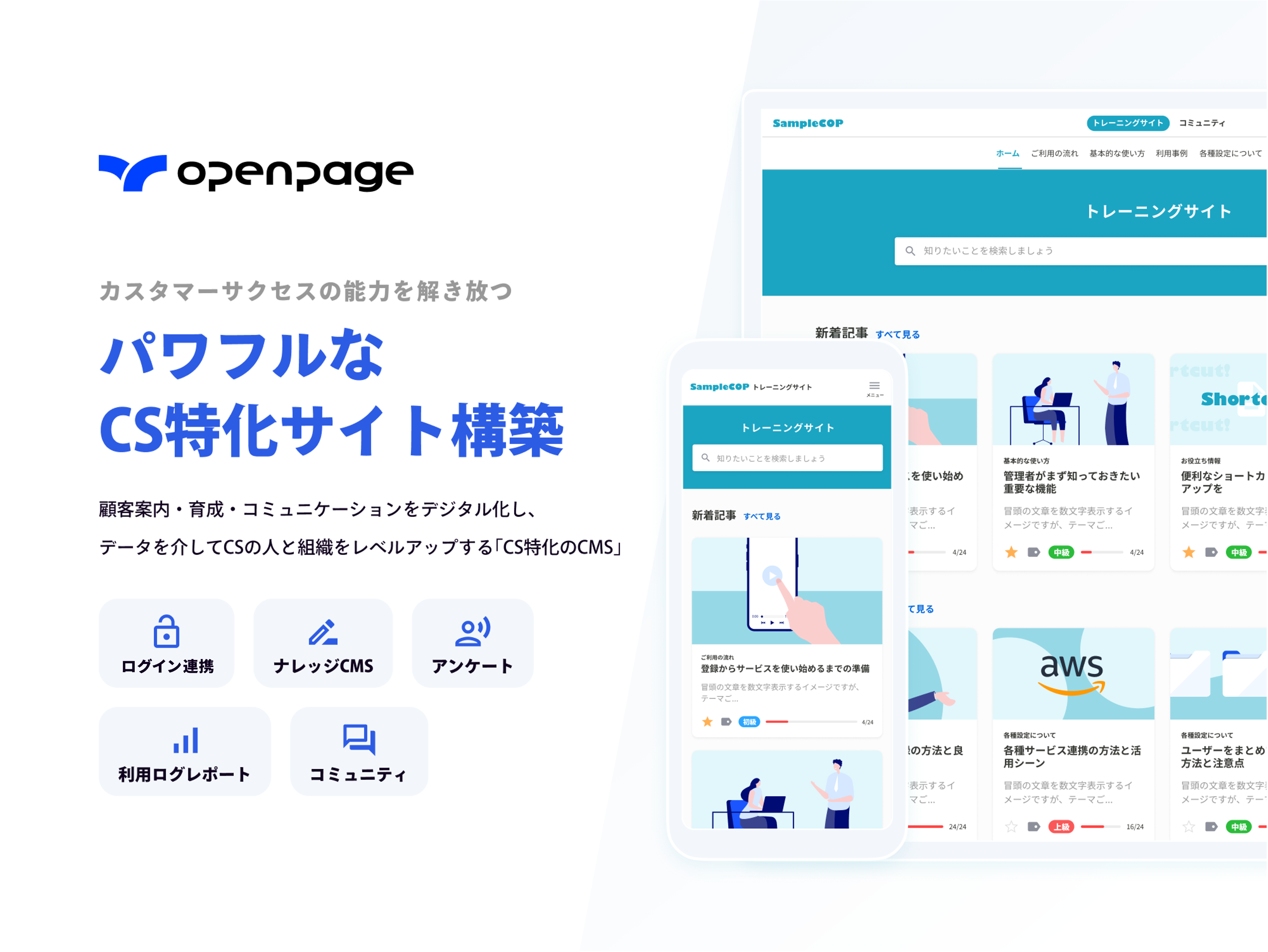 - テックタッチやコミュニティの機能も:openpageシステムでテックタッチ、コミュニティが導入できる