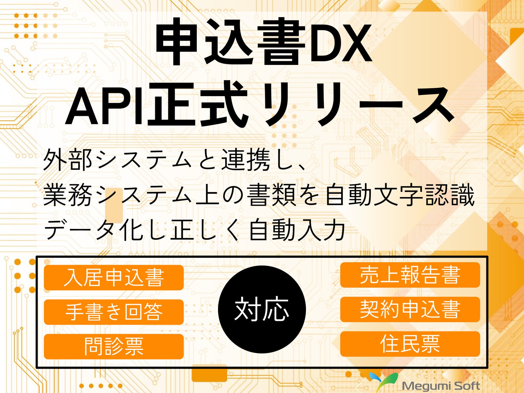 株式会社めぐみソフトが展開するOCRサービス『申込書DX』がAPIの提供を開始