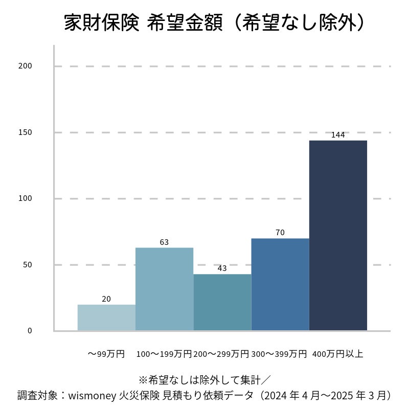 🔹3. 家財保険、希望金額「400万円以上」が最多に。意識は二極化