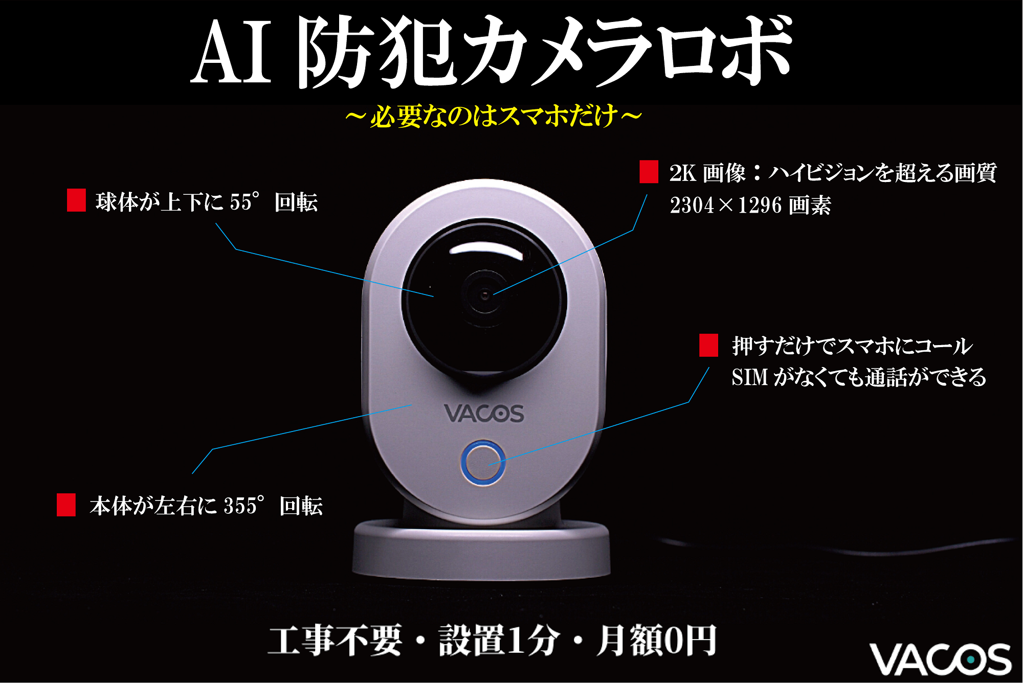 災害などの緊急時もボタン一つでスマホに通話コールできる、AI防犯カメラロボ『Vacos Cam PT』をクラウドファンディング『Booster』にて3月12日より、販売開始したことをお知らせ致します。