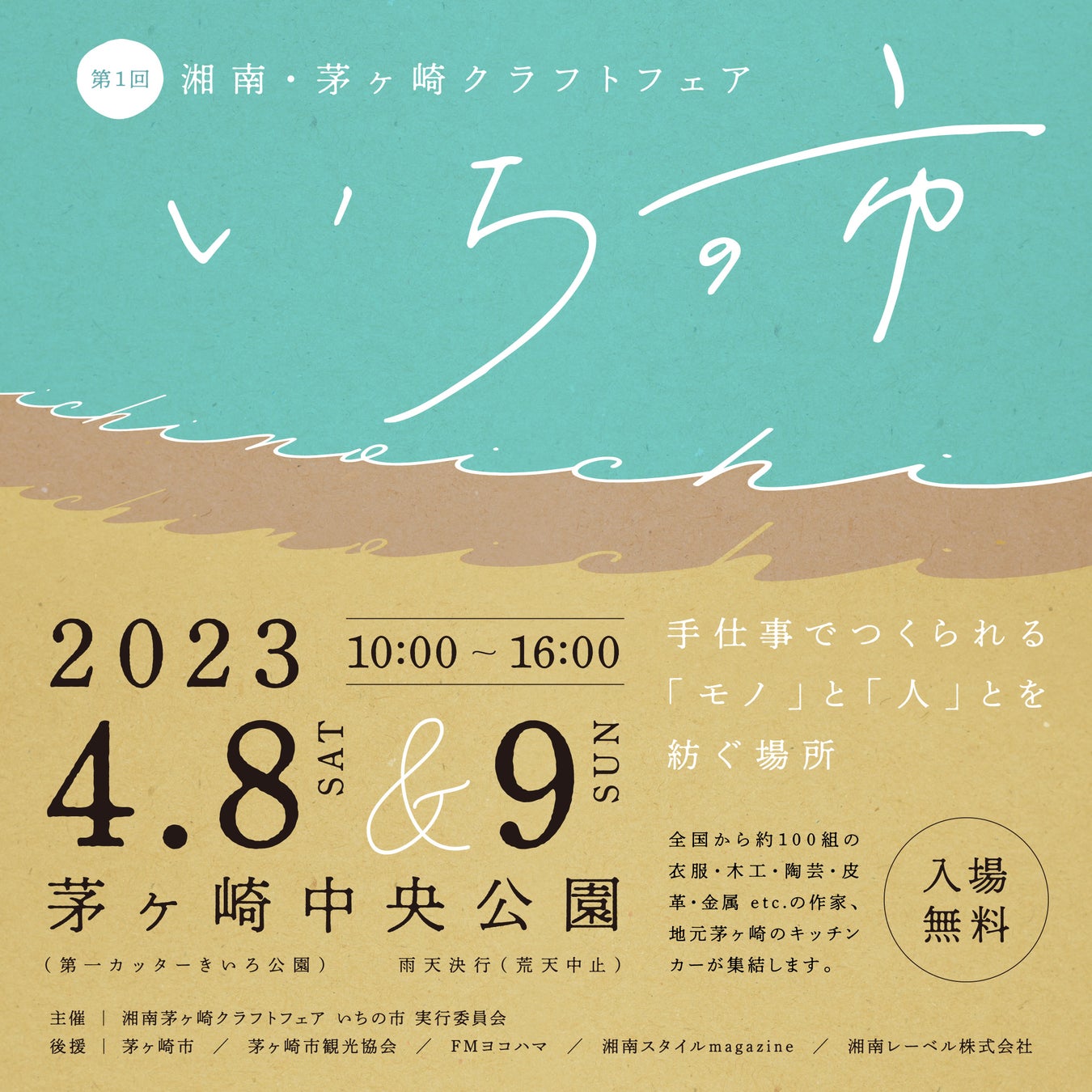 第一回『湘南茅ヶ崎クラフトフェア いちの市』出展者決定!全国から120組の職人が集結する湘南地区でのクラフトフェアを2023年4月8日(土)〜9日(日)に茅ヶ崎市茅ヶ崎中央公園で開催。