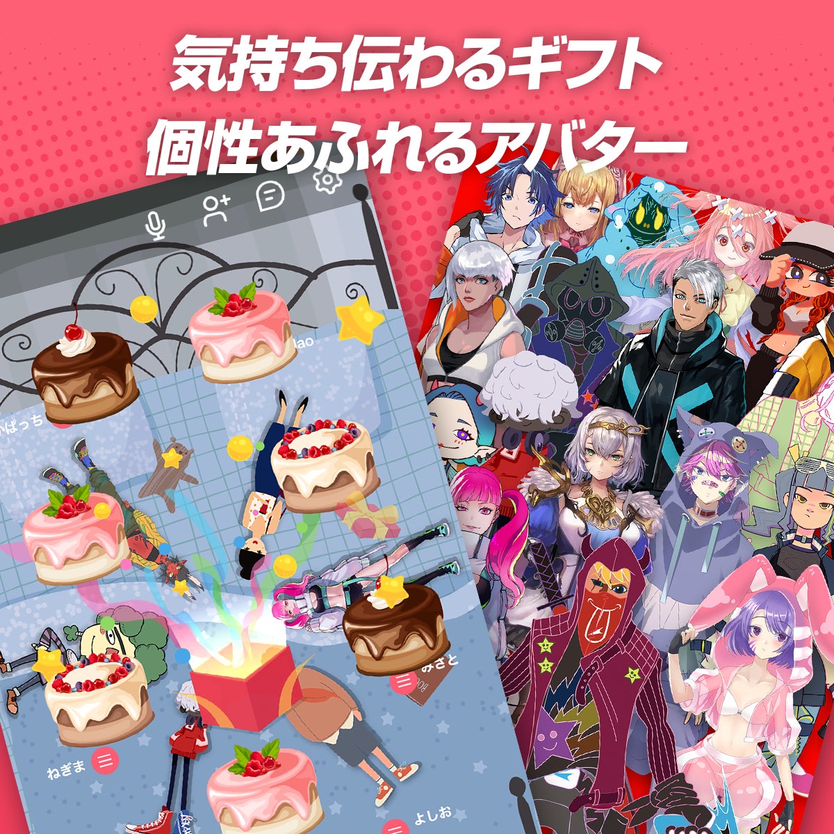 ボイスチャットをしながらアバターを変更したり、他の友達とチャットをしたりなど、ルーム画面に縛られず自由アプリ内で移動ができ遊び方の幅がさらに広がりました。