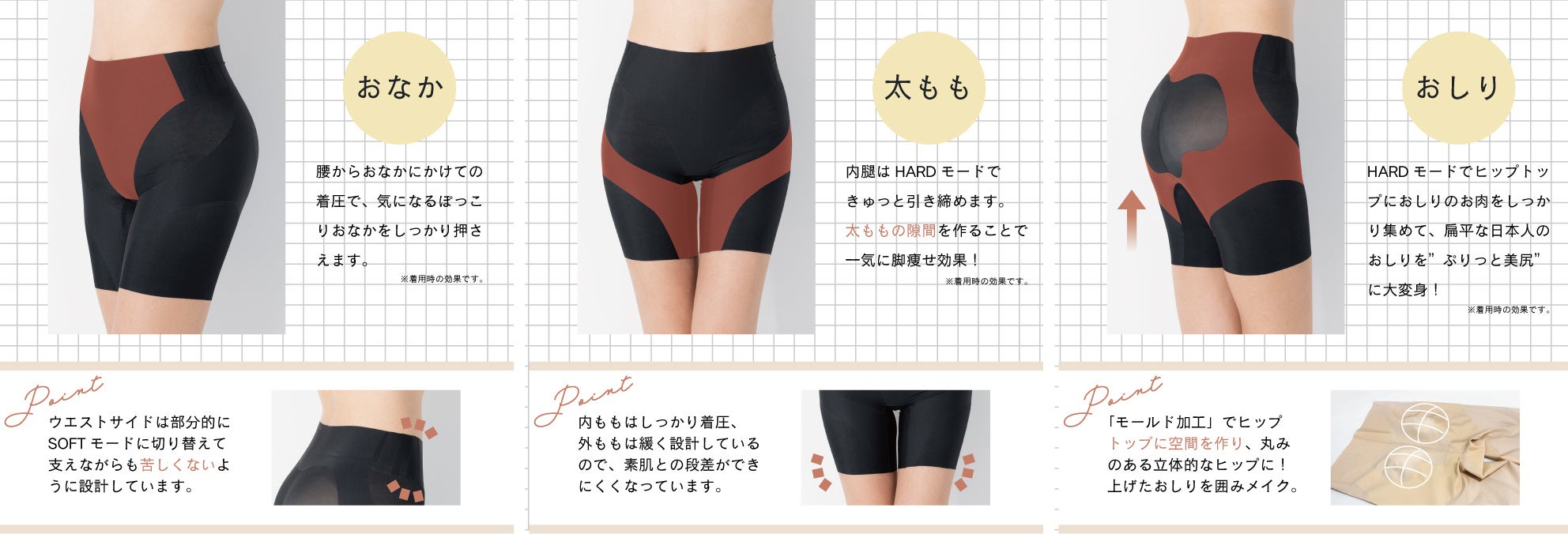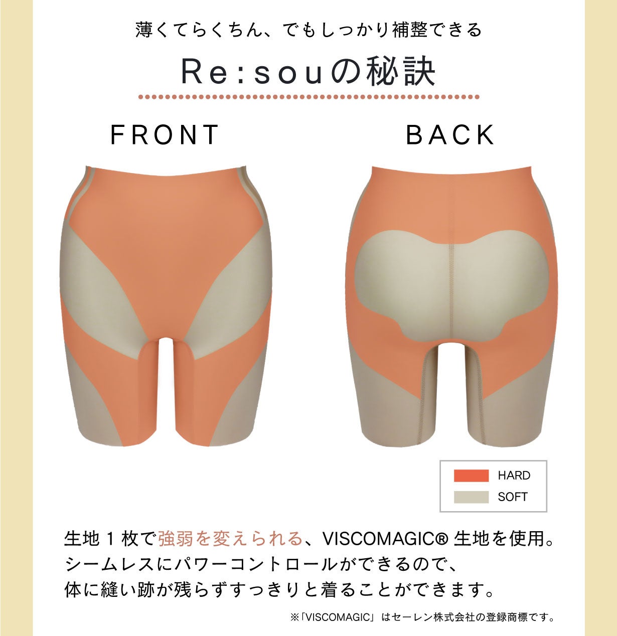 - 究極の無縫製®×Viscomagic®で100%シームレスのパワーコントロールを実現しました。