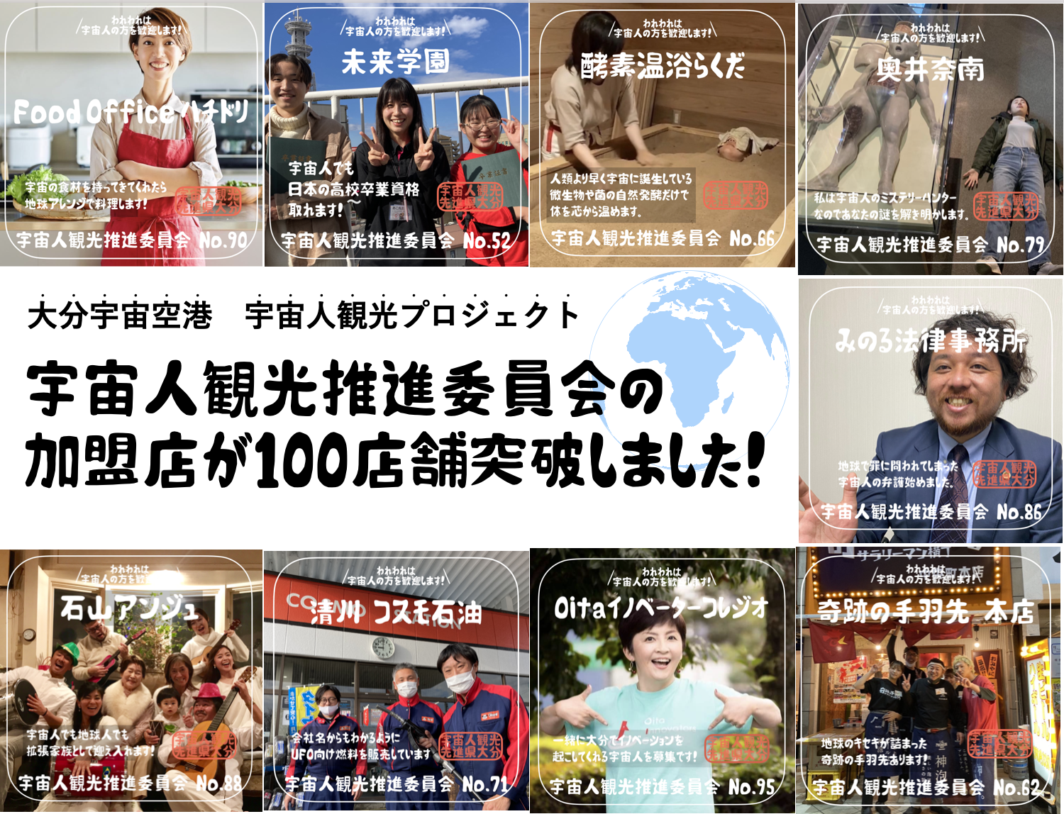 大分県の宇宙観光業を牽引する「宇宙人観光推進委員会」の加盟店が1ヶ月で100店舗を突破しました!