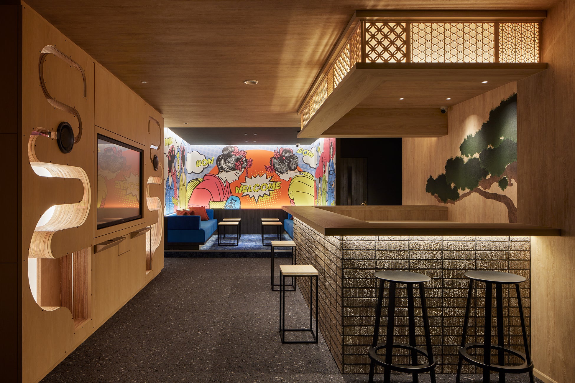 客室は、日本ならではのモチーフ×POPアートを融合させた和ポップなデザインとなっています。