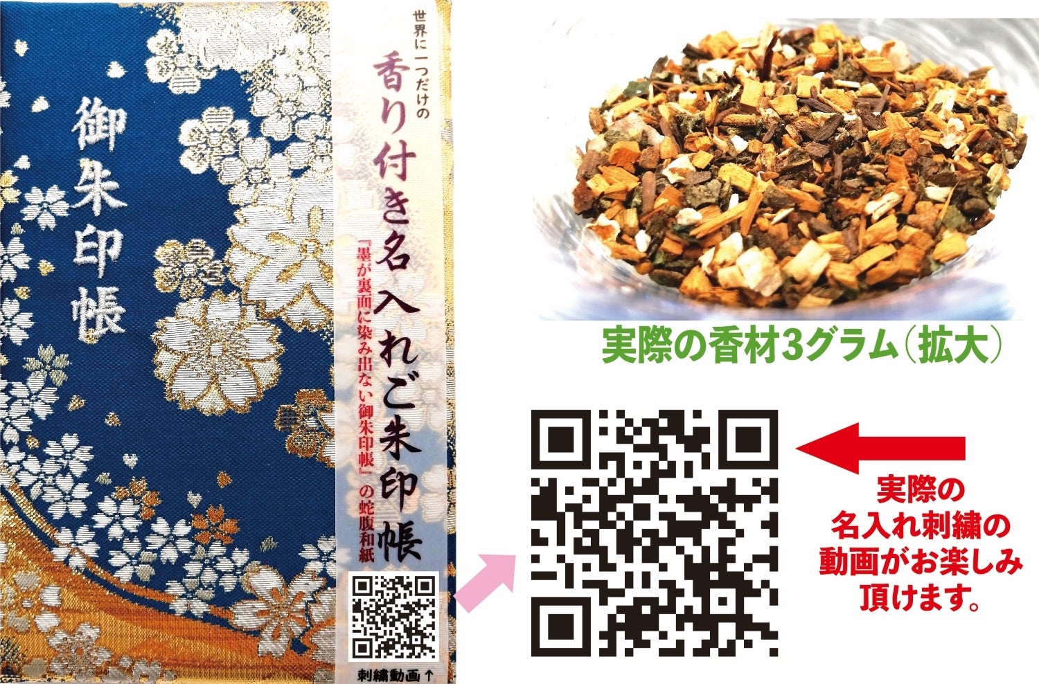 表紙に匂い袋の香材を巻き込んだ、名前刺繍入りのご朱印帳を発売します。